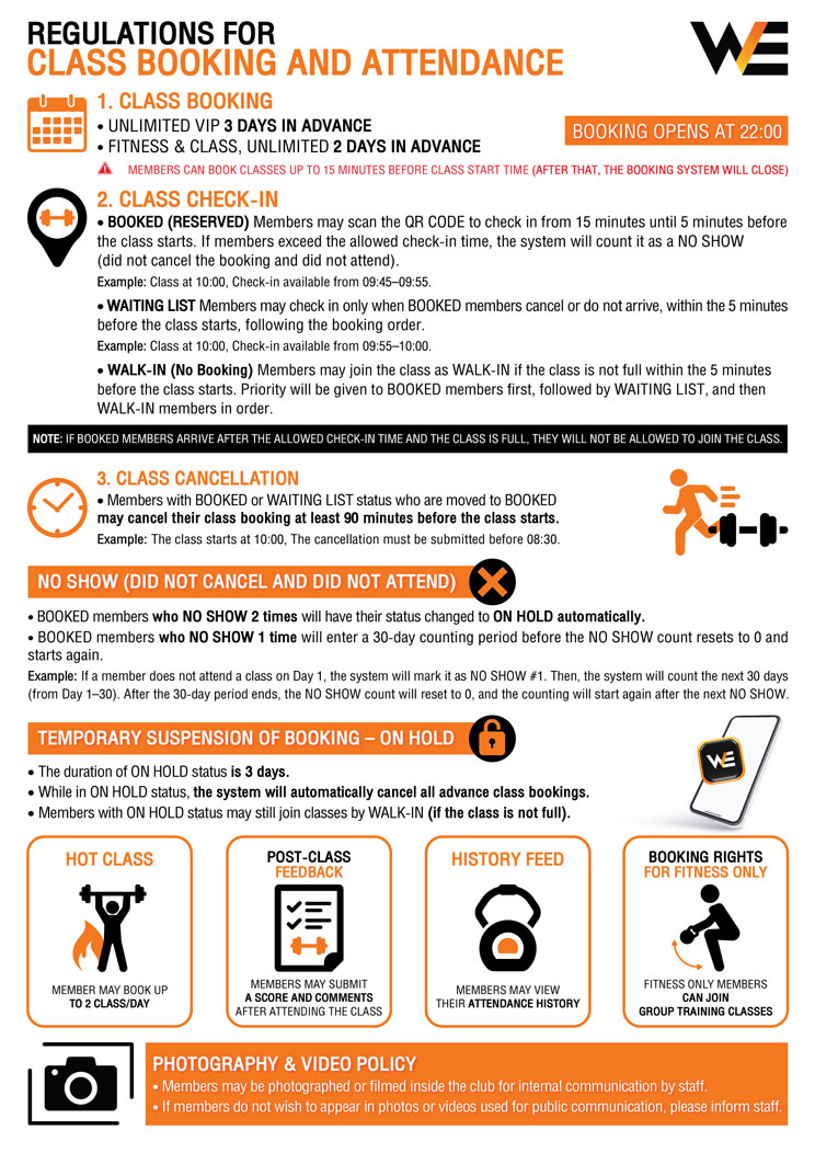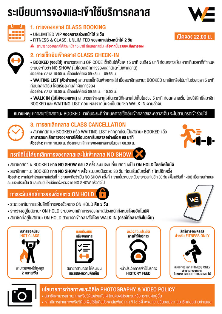 ระเบียบการจอง และเข้าใช้บริการคลาส