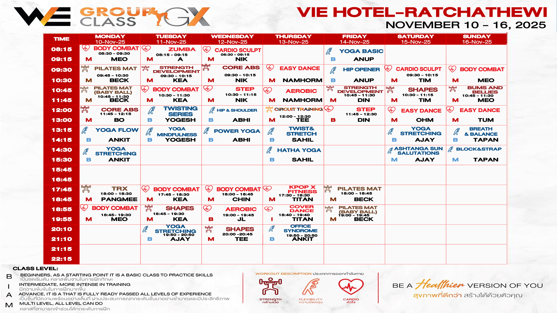 ตารางคลาส วี ฟิตเนส ระหว่างวันที่ 10 – 16 พฤศจิกายน 2568