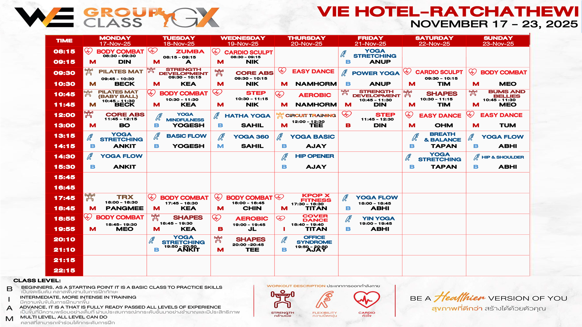 ตารางคลาส วี ฟิตเนส ระหว่างวันที่ 17 – 23 พฤศจิกายน 2568