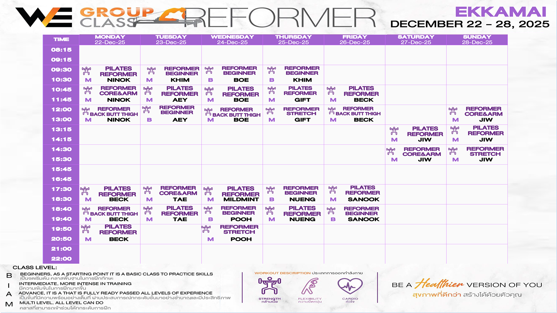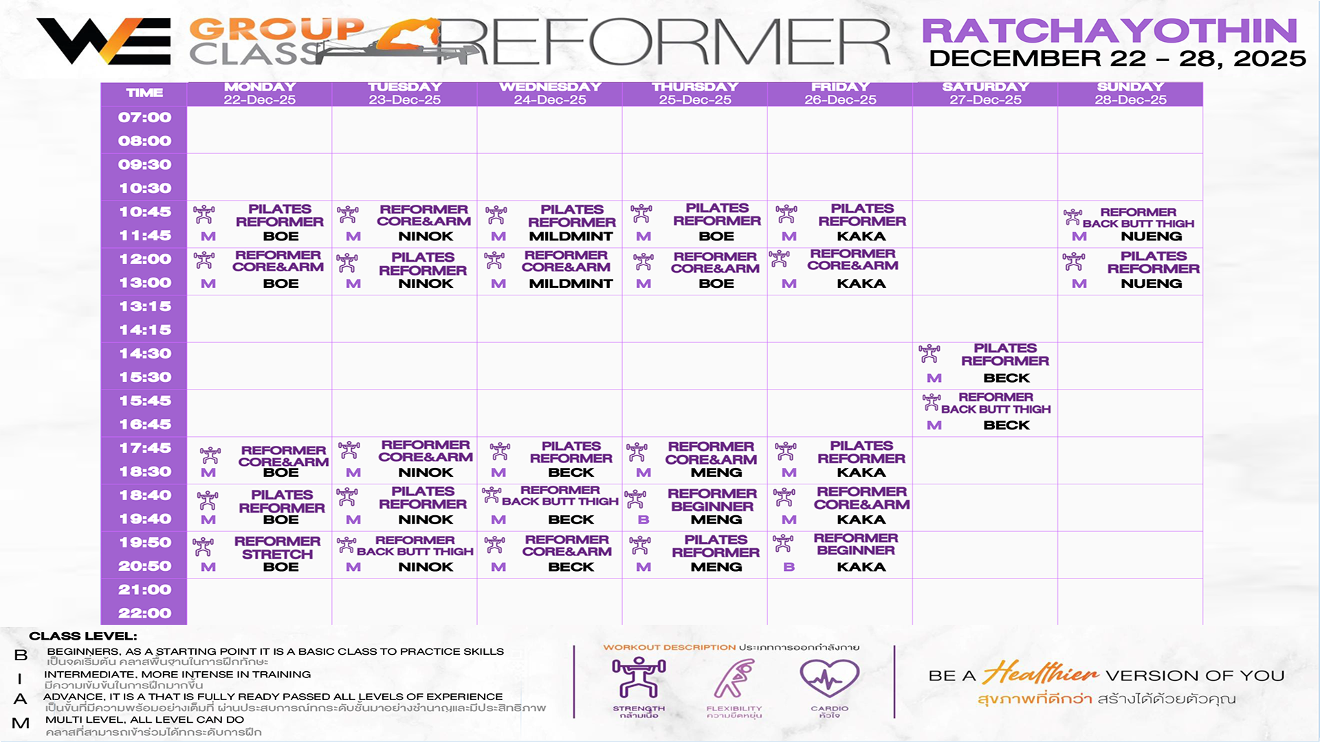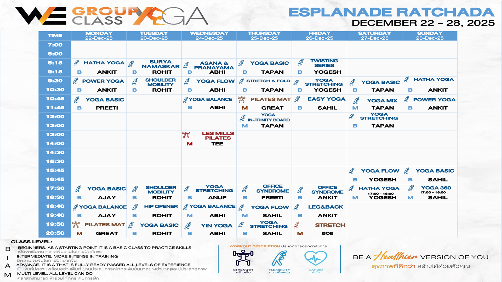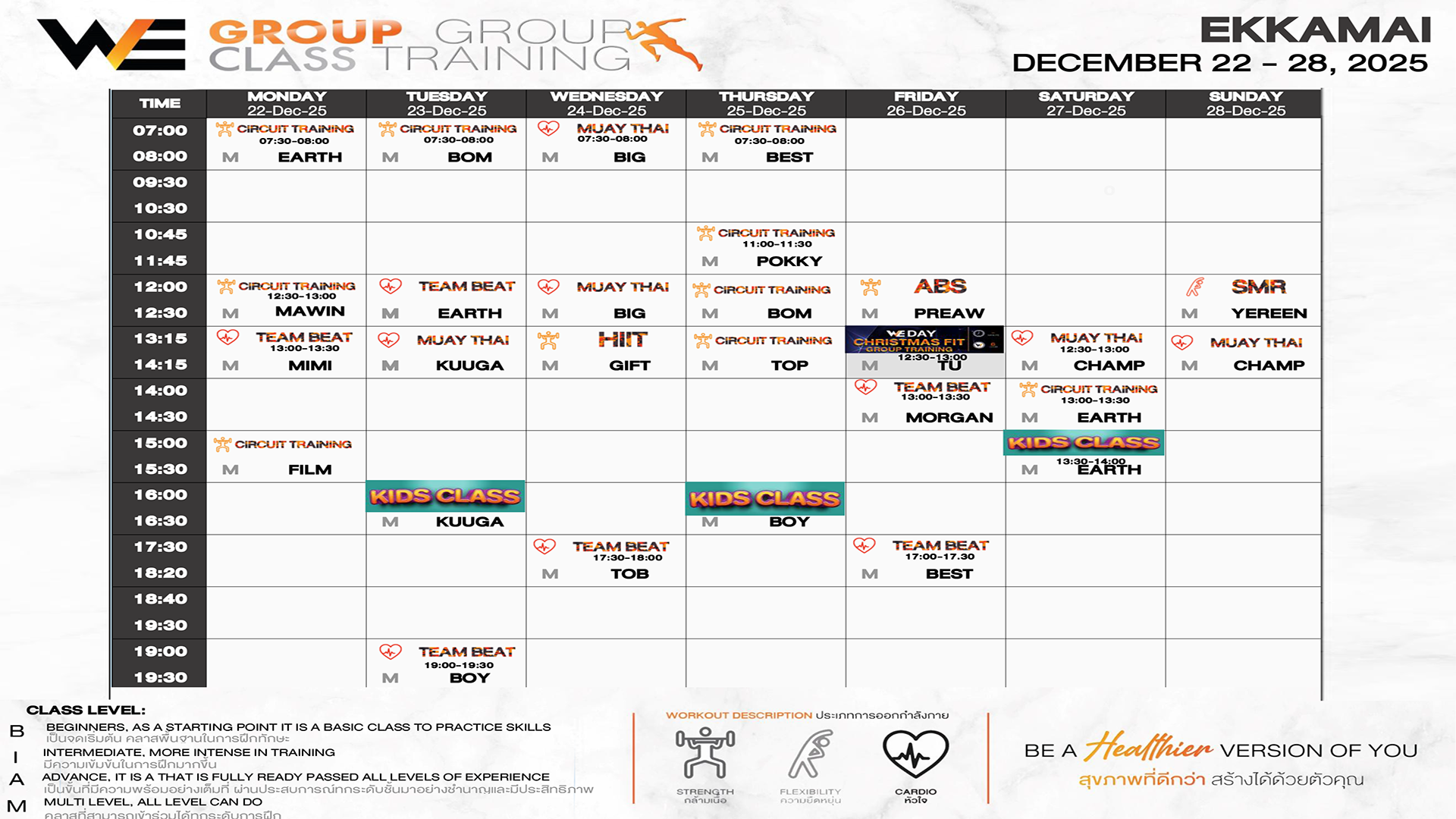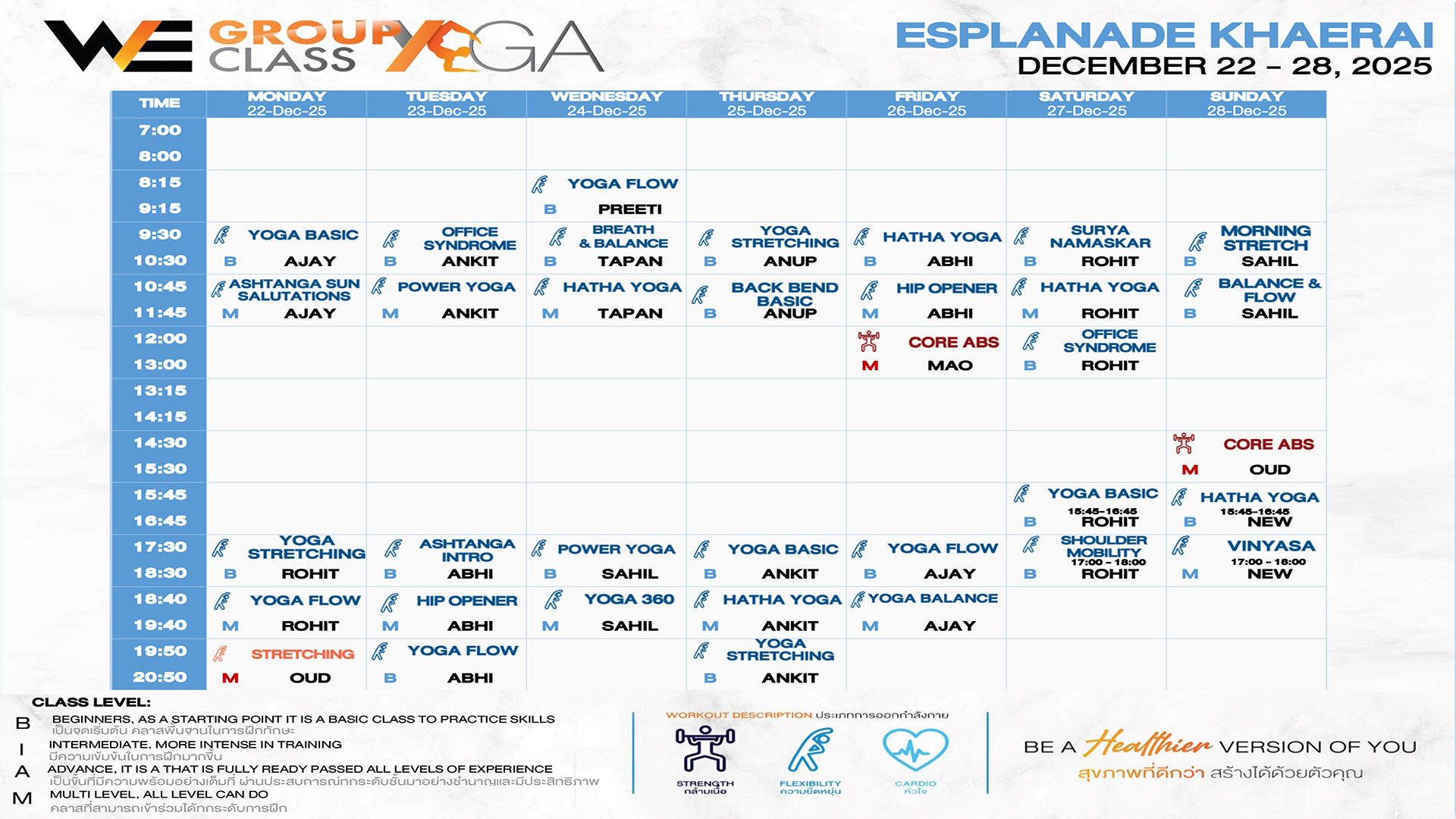 ตารางคลาส วี ฟิตเนส ระหว่างวันที่ 22-28 ธันวาคม 2568