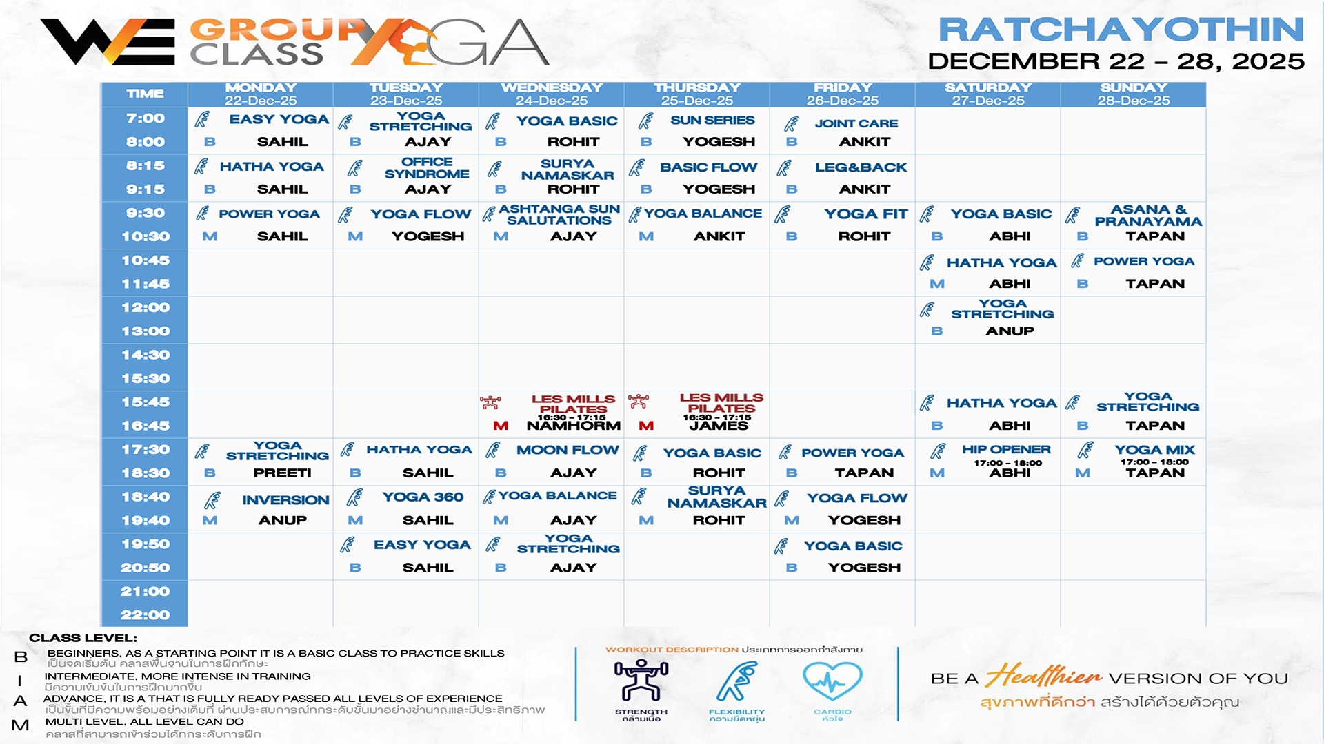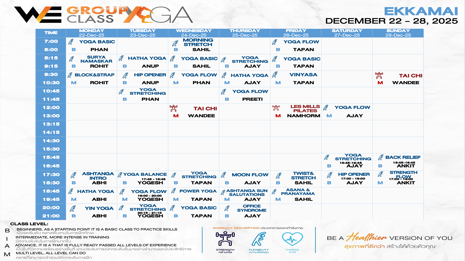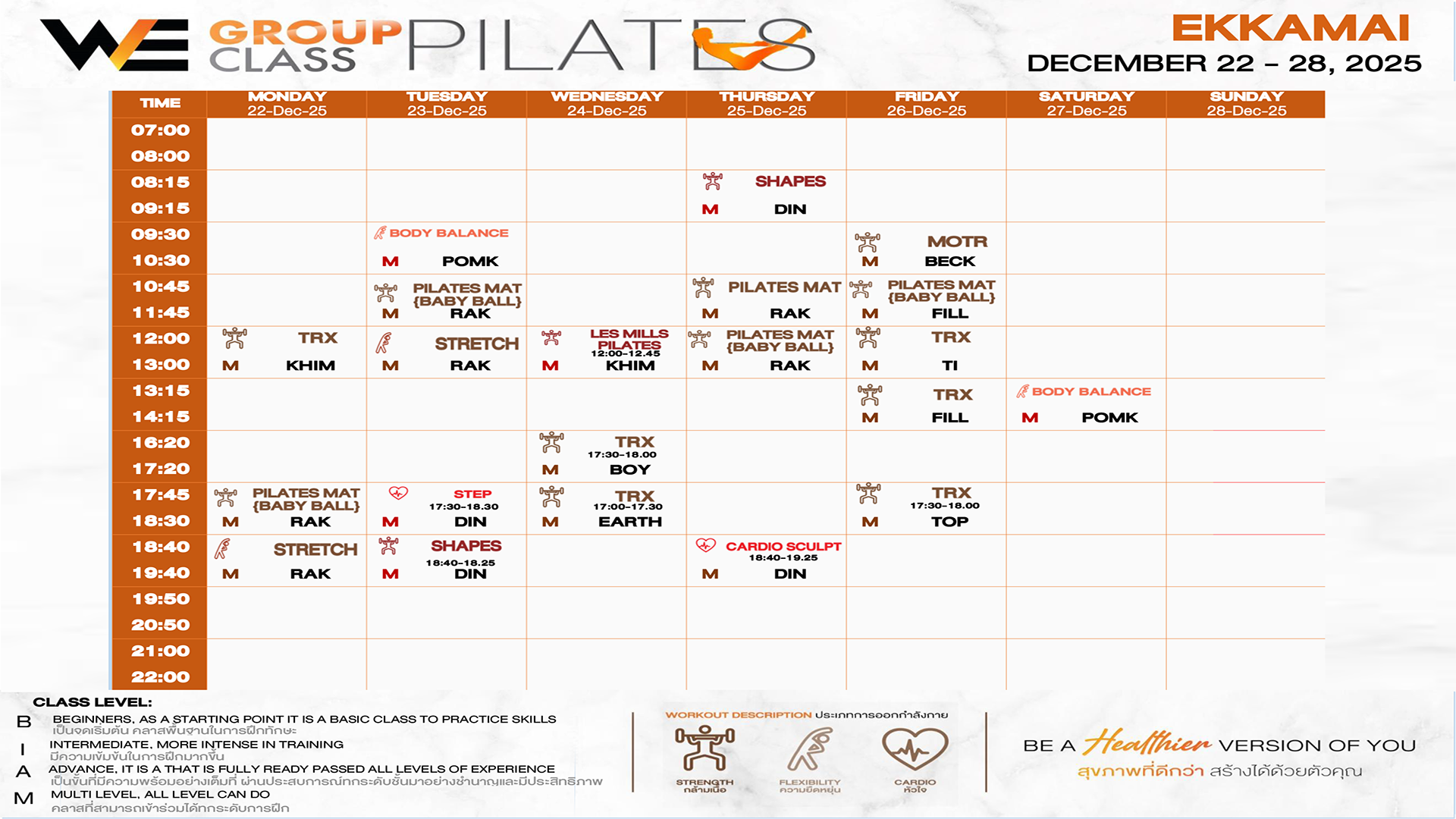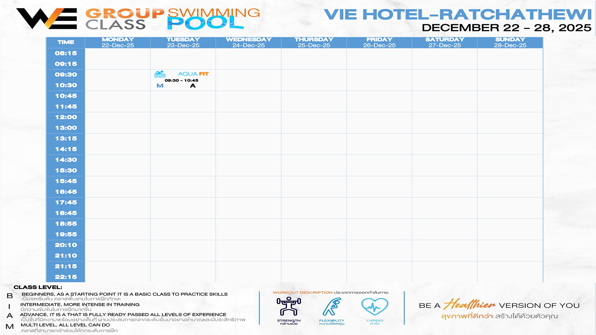 ตารางคลาส วี ฟิตเนส ระหว่างวันที่ 22-28 ธันวาคม 2568