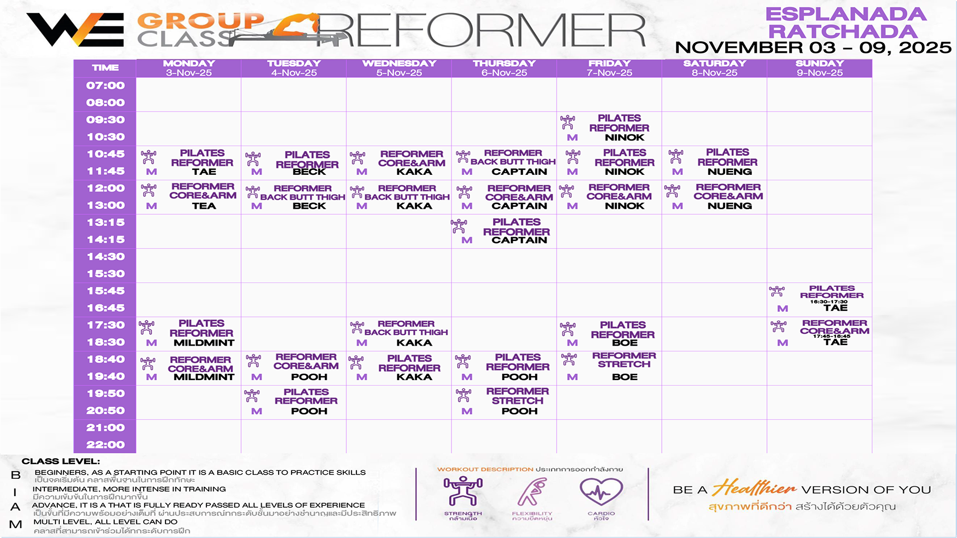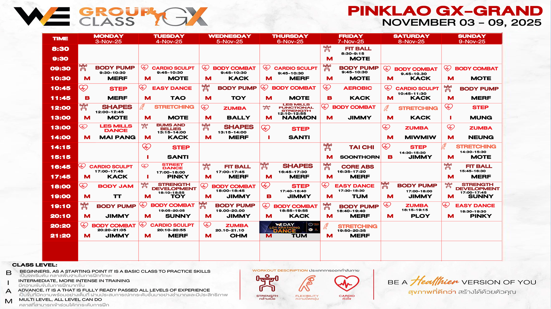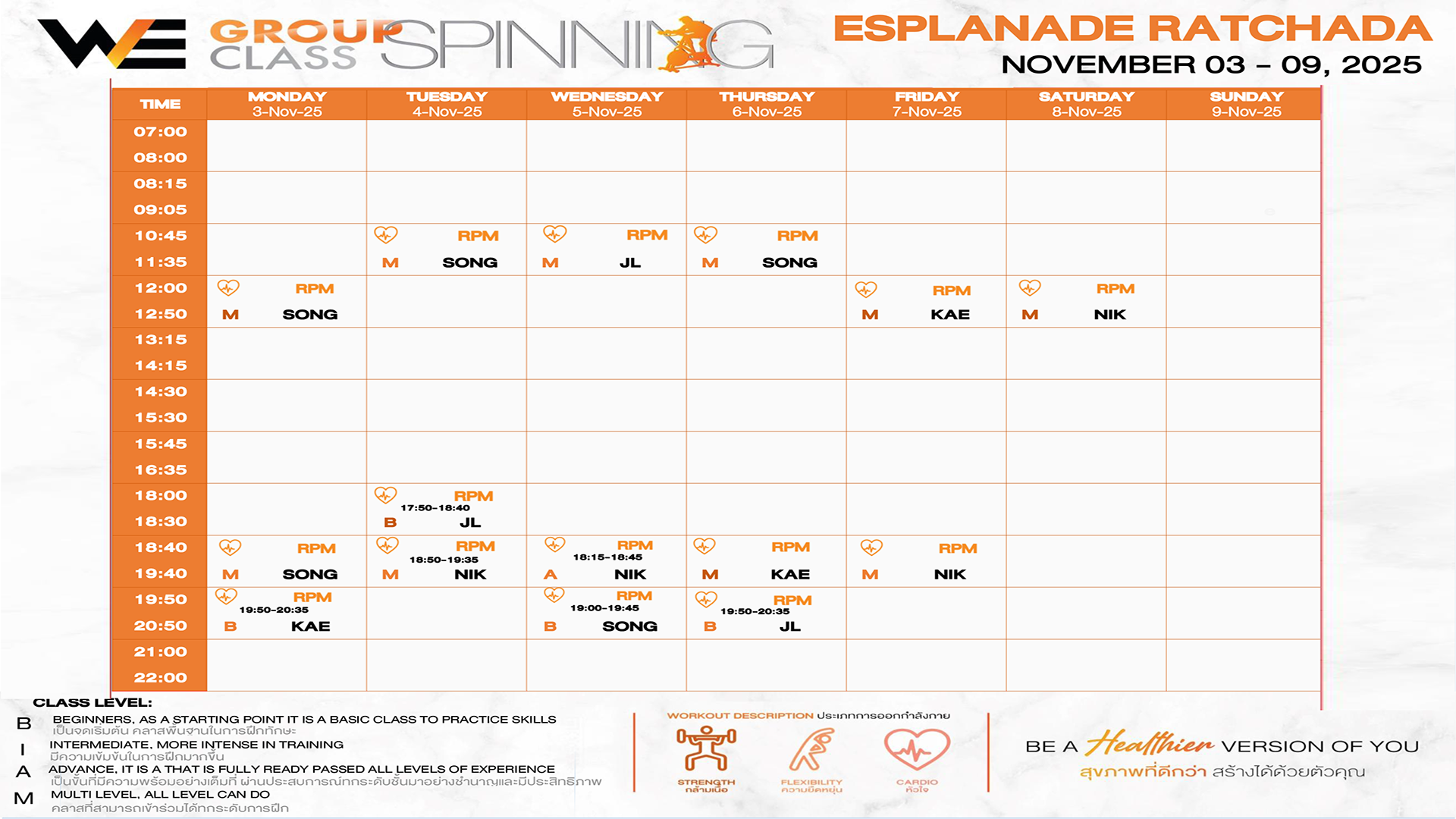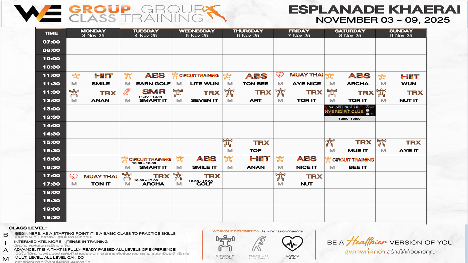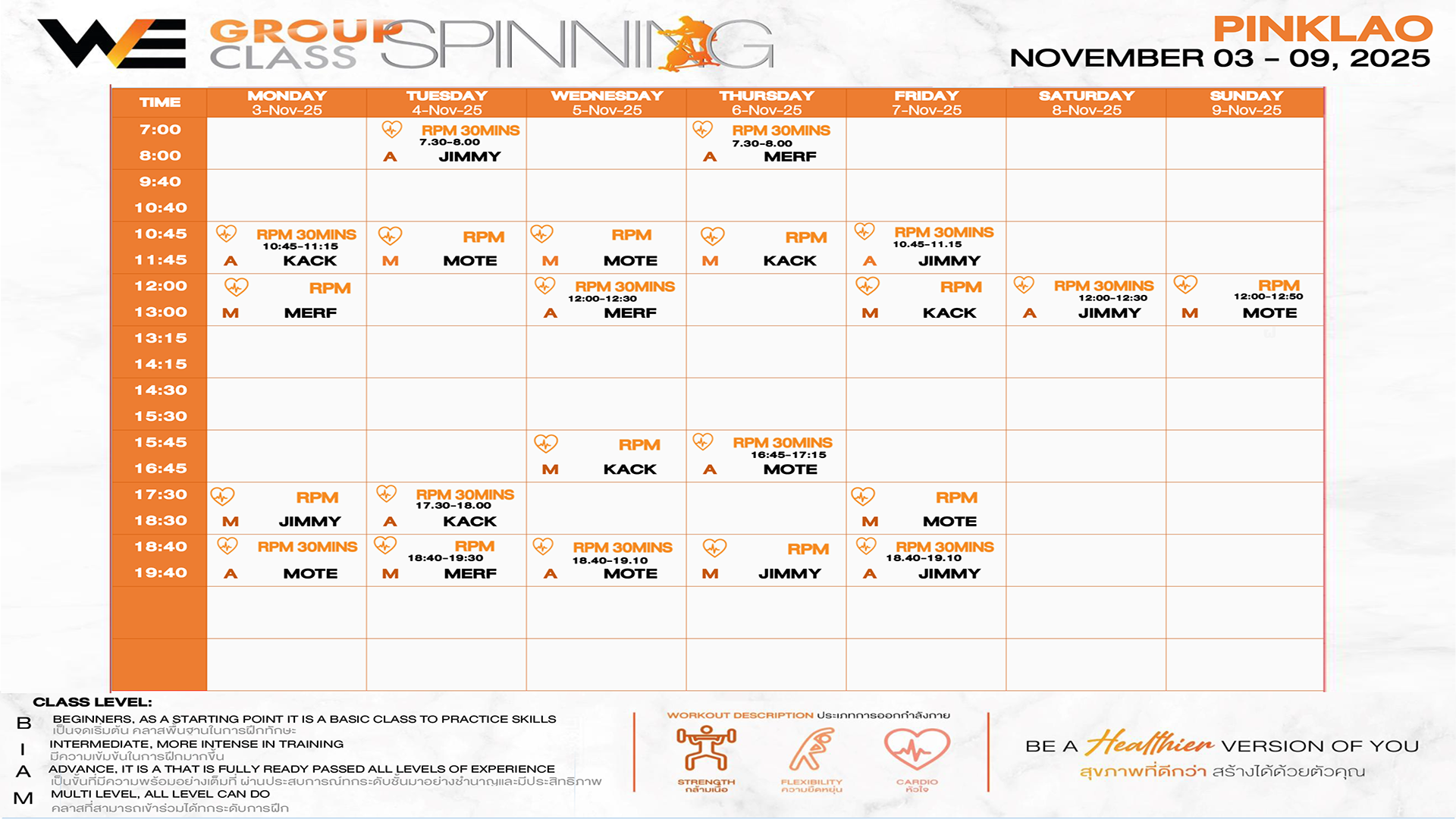 ตารางคลาส วี ฟิตเนส ระหว่างวันที่ 3 – 9 พฤศจิกายน 2568