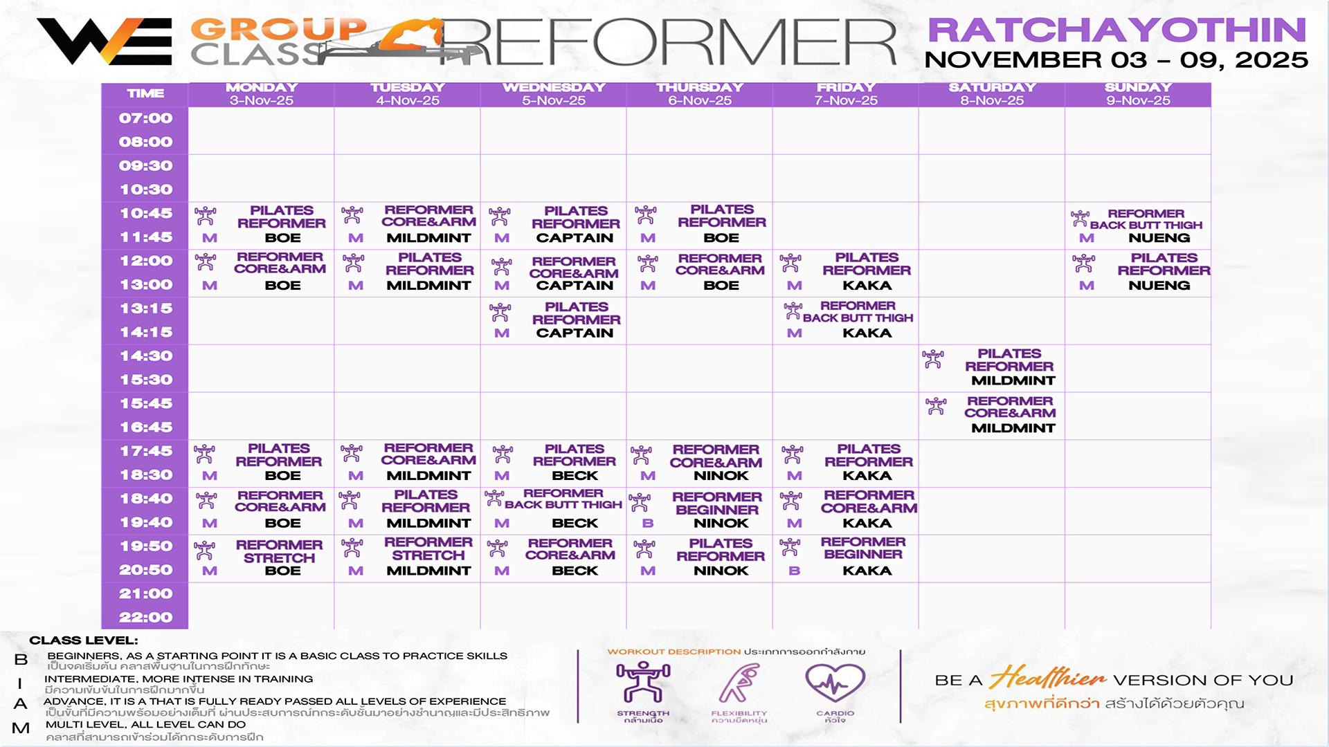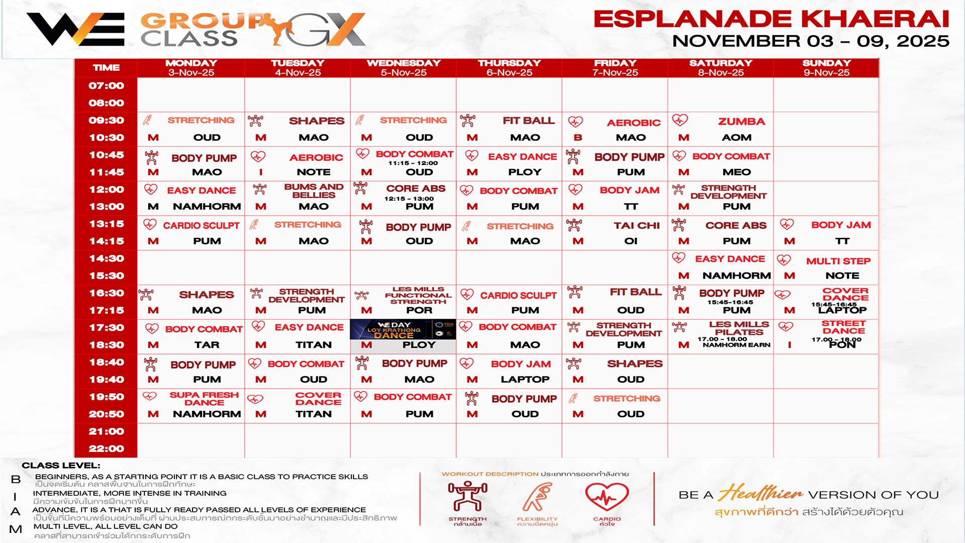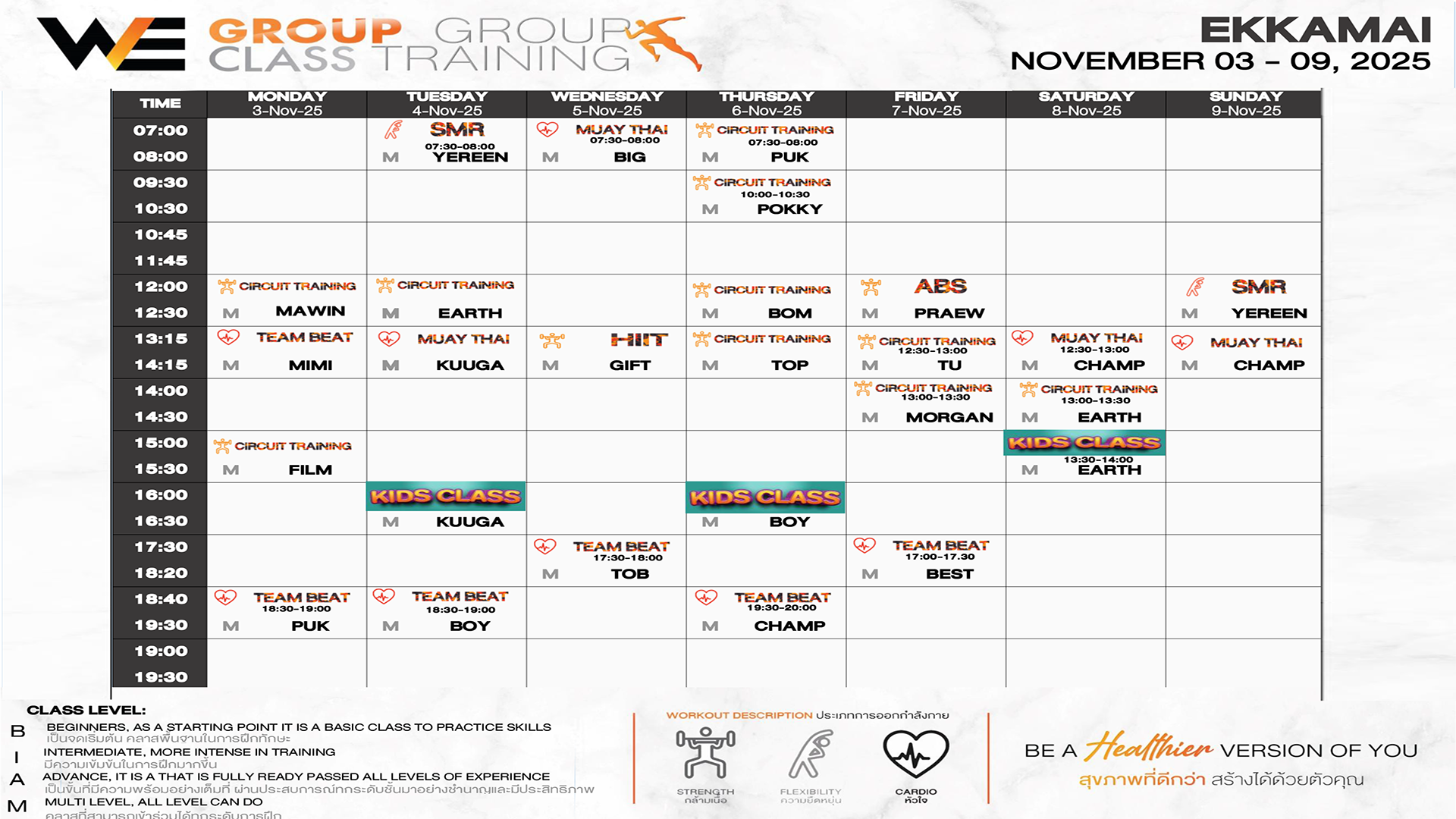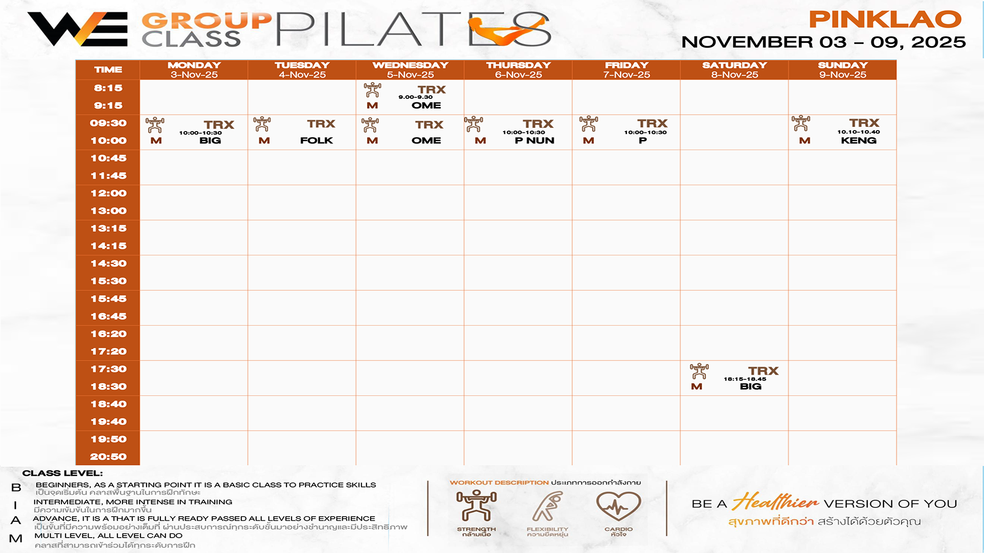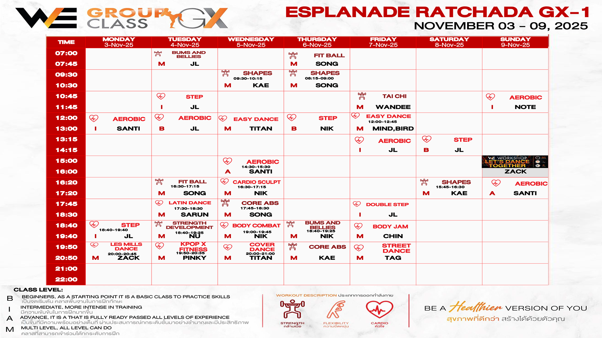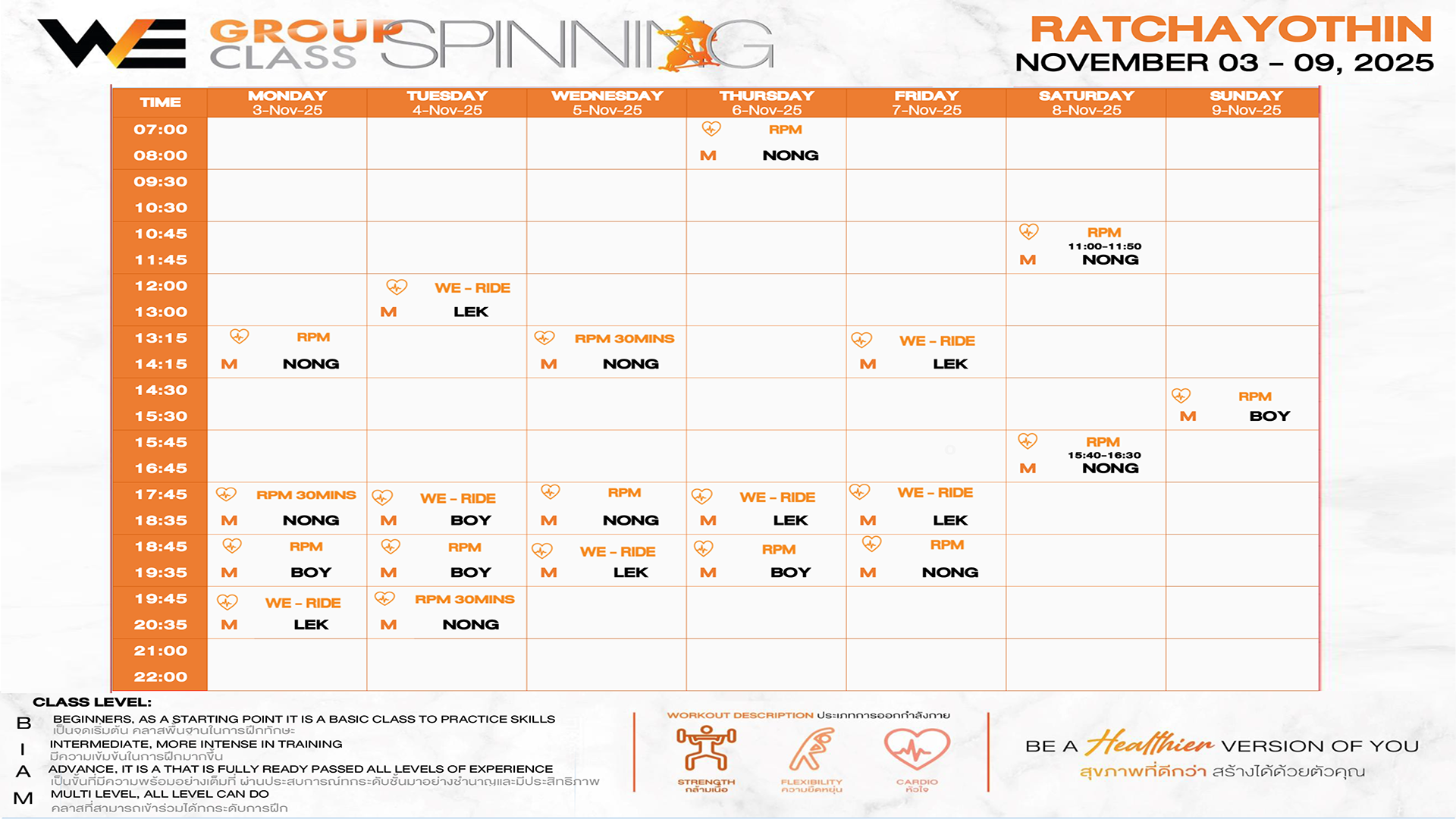 ตารางคลาส วี ฟิตเนส ระหว่างวันที่ 3 – 9 พฤศจิกายน 2568