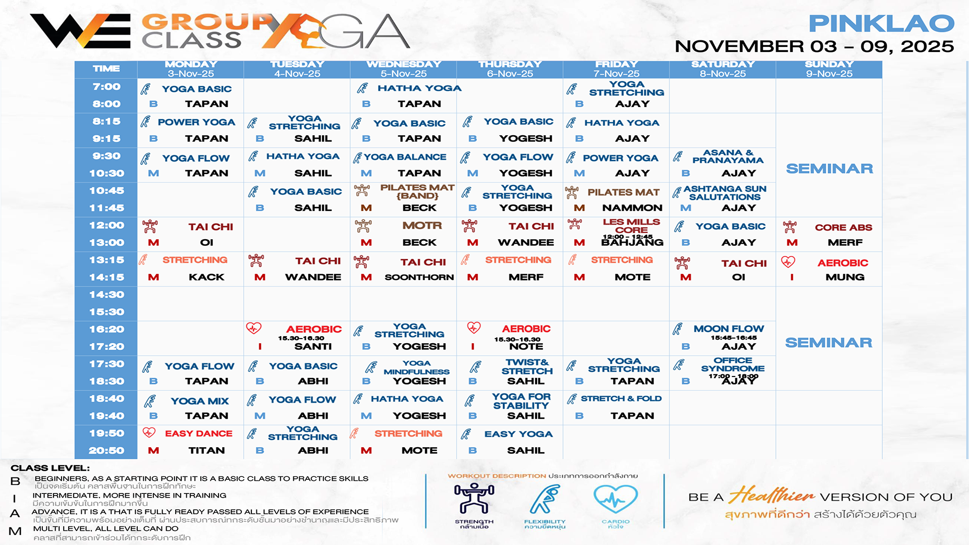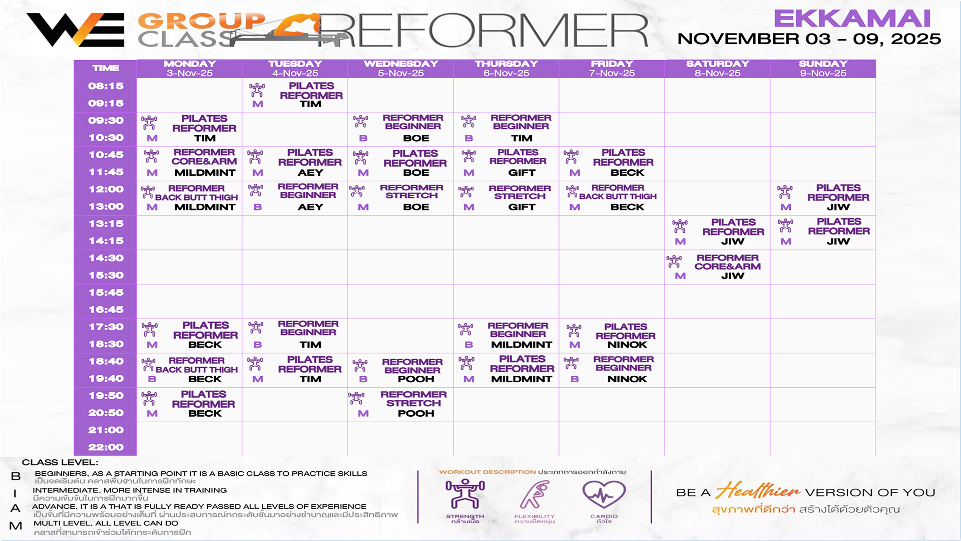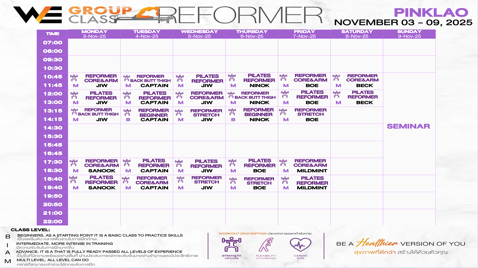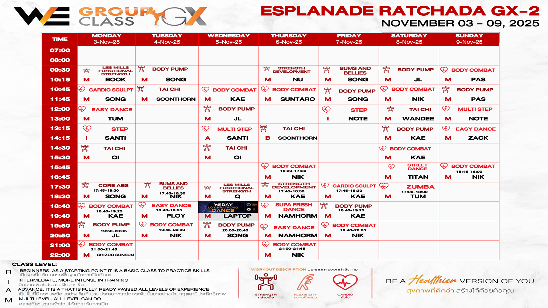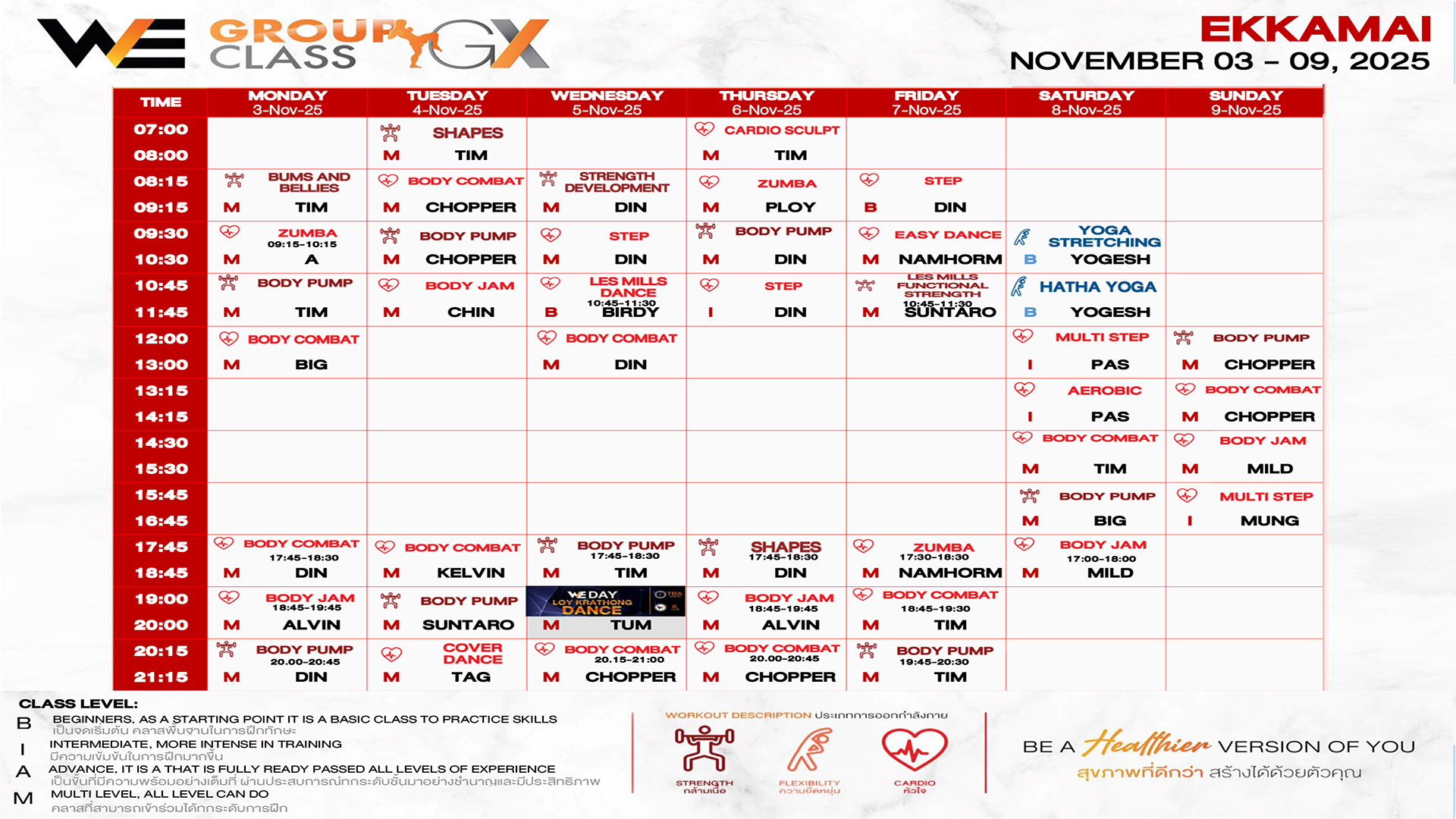 ตารางคลาส วี ฟิตเนส ระหว่างวันที่ 3 – 9 พฤศจิกายน 2568