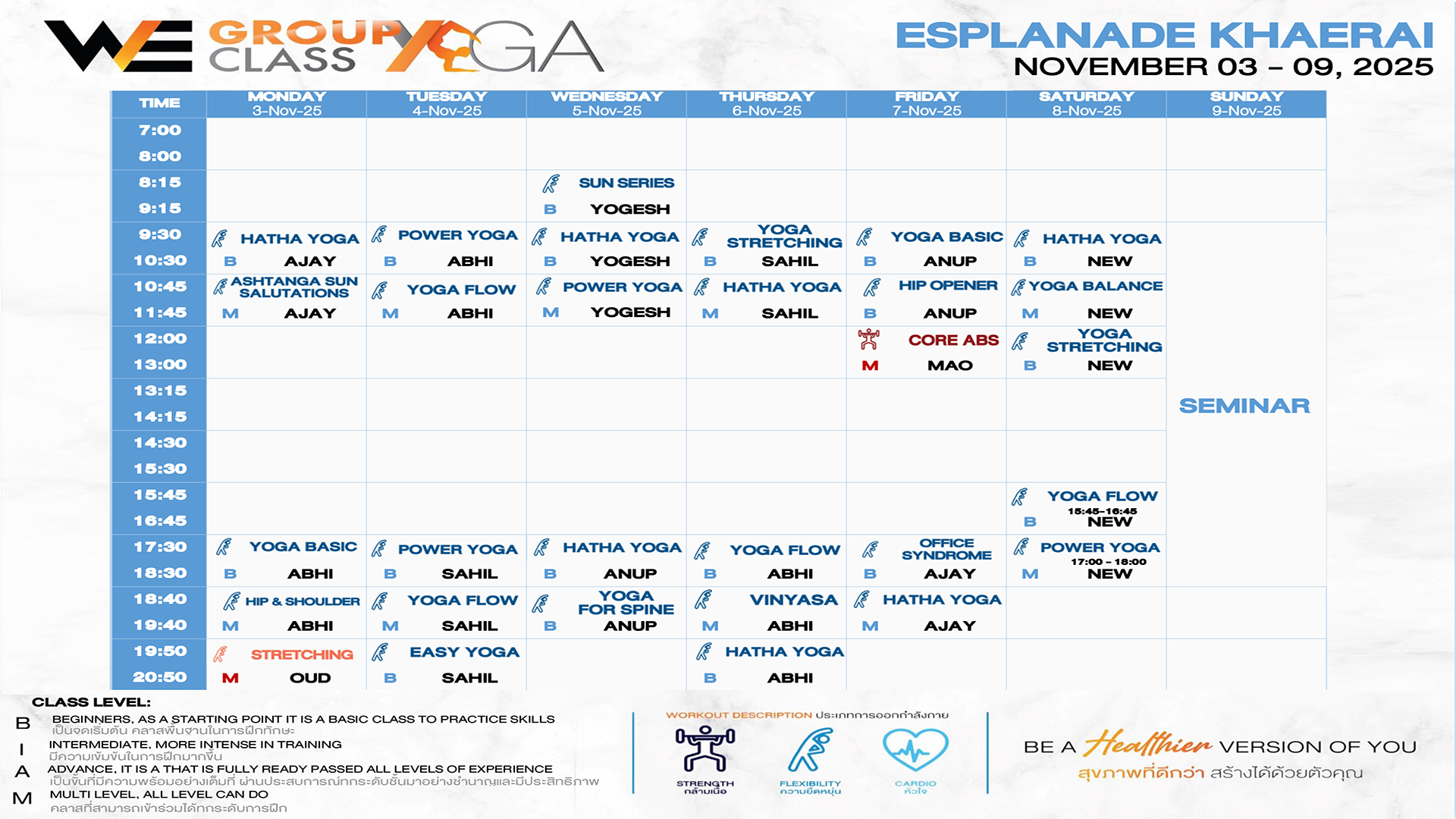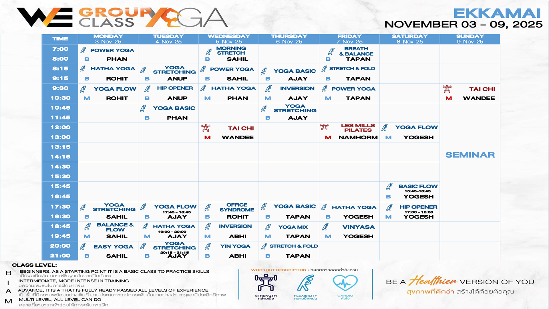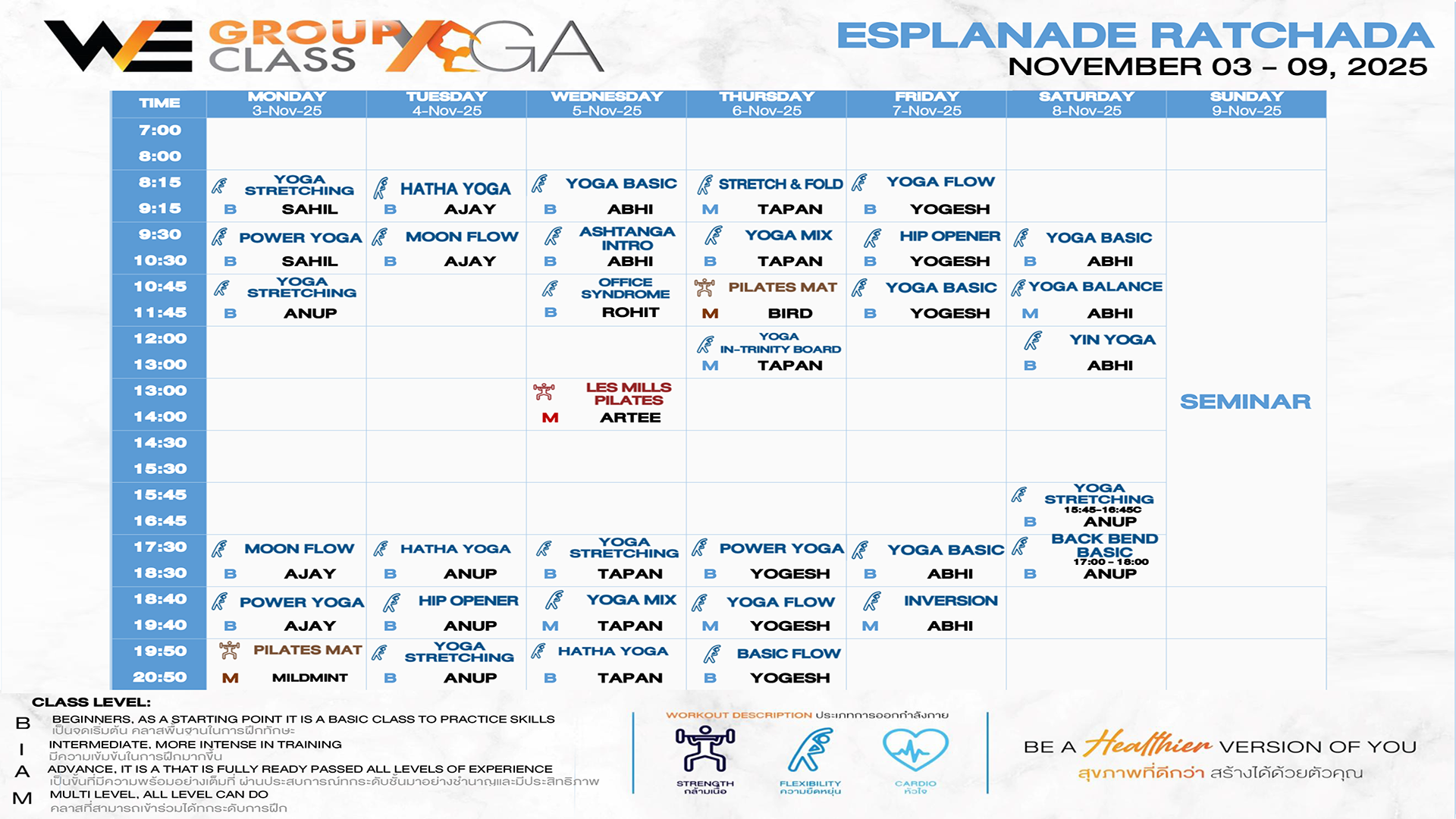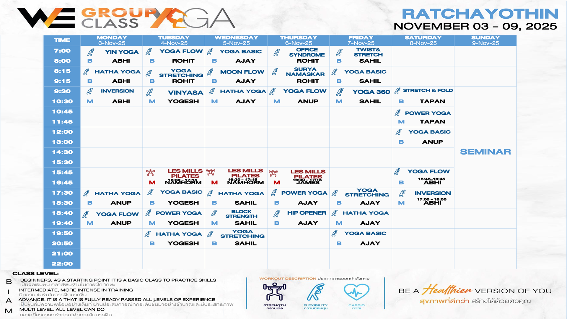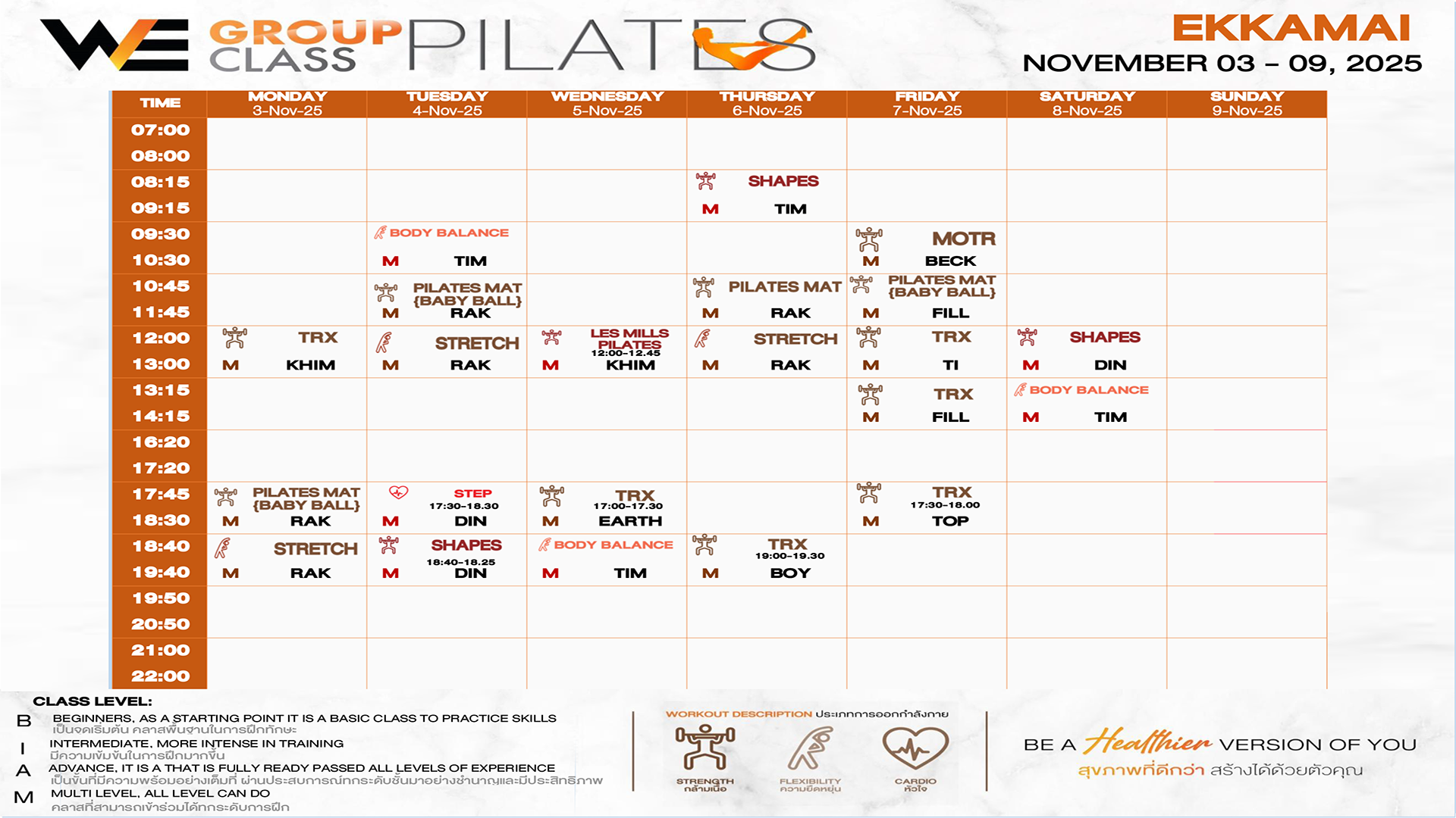 ตารางคลาส วี ฟิตเนส ระหว่างวันที่ 3 – 9 พฤศจิกายน 2568