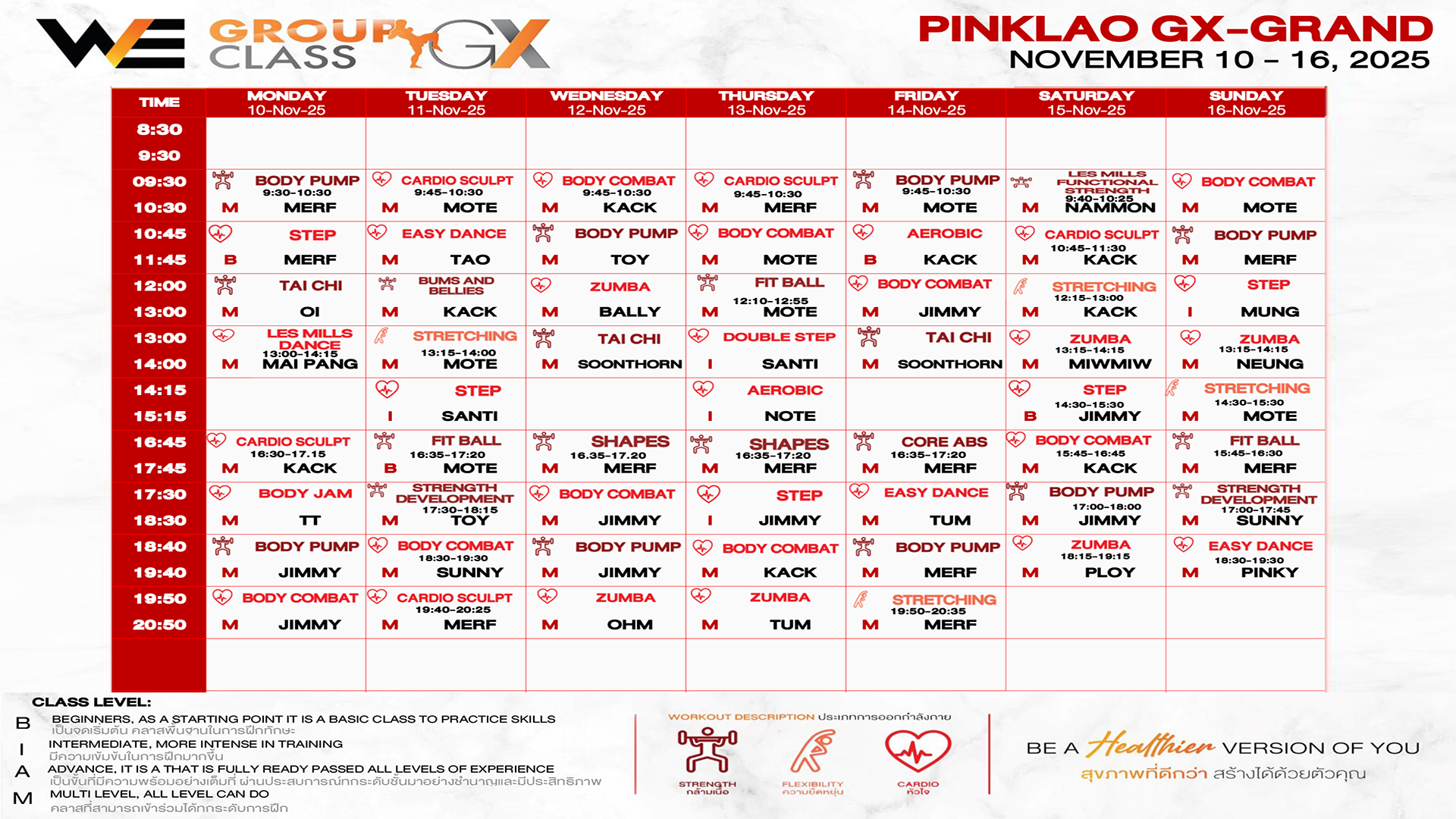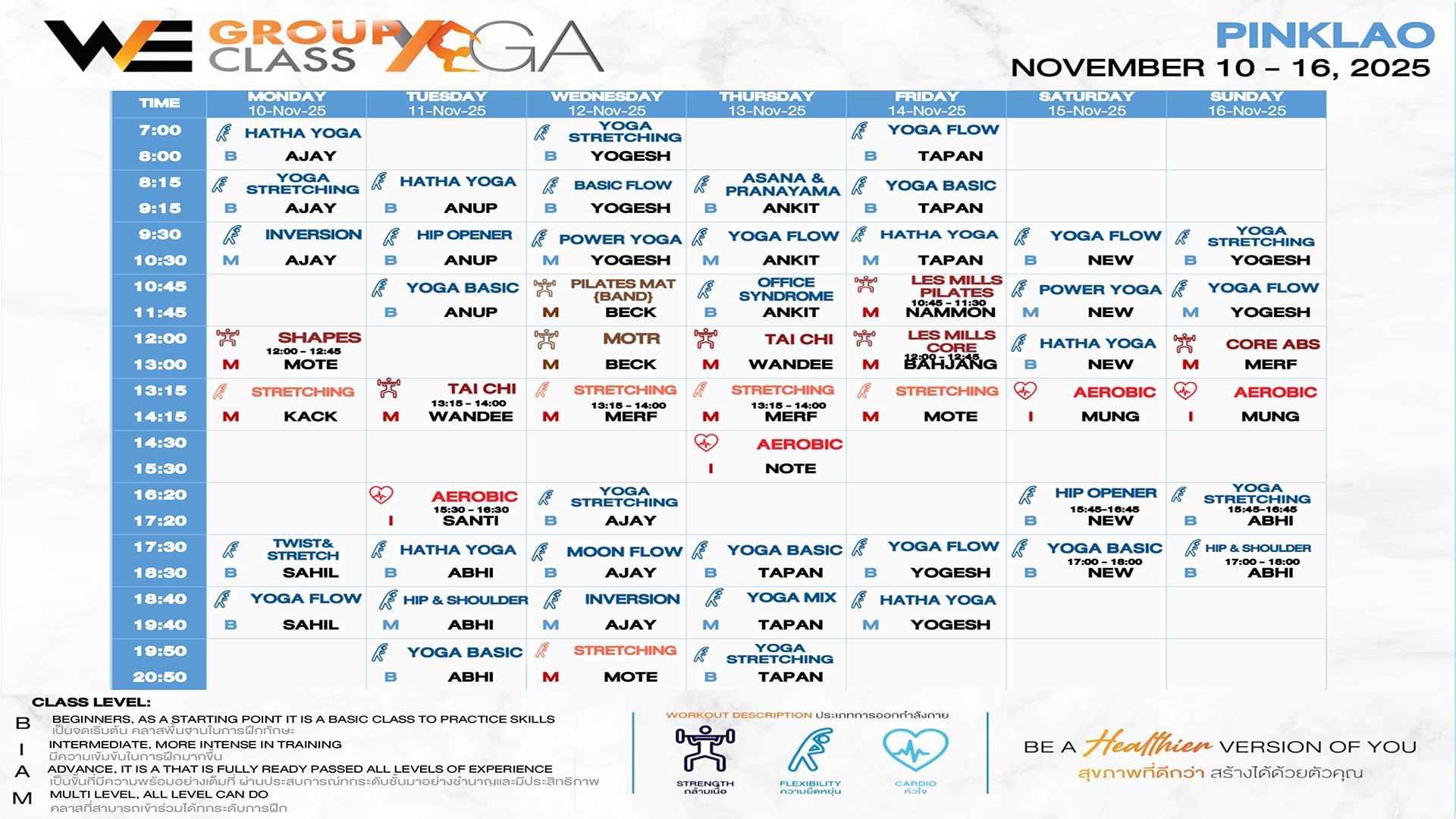 CLASS LINE UP 10 – 16 NOVEMBER 2025