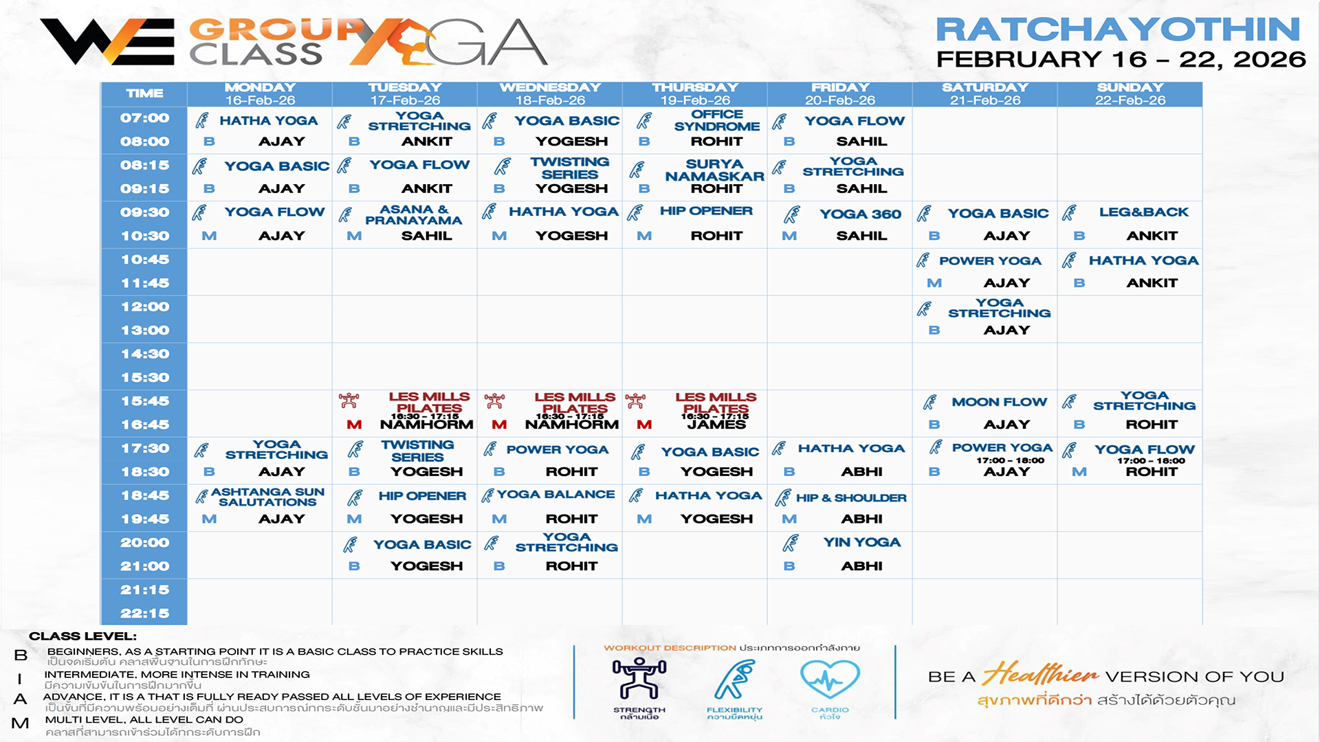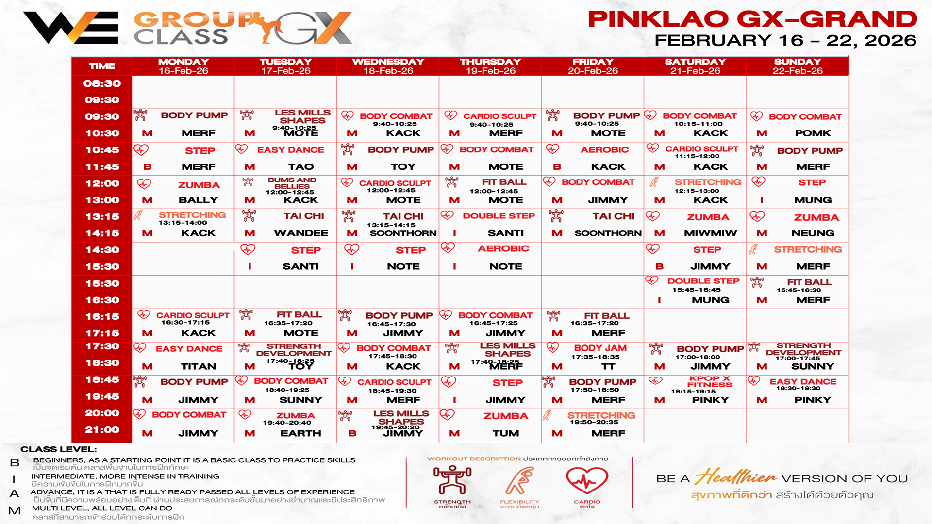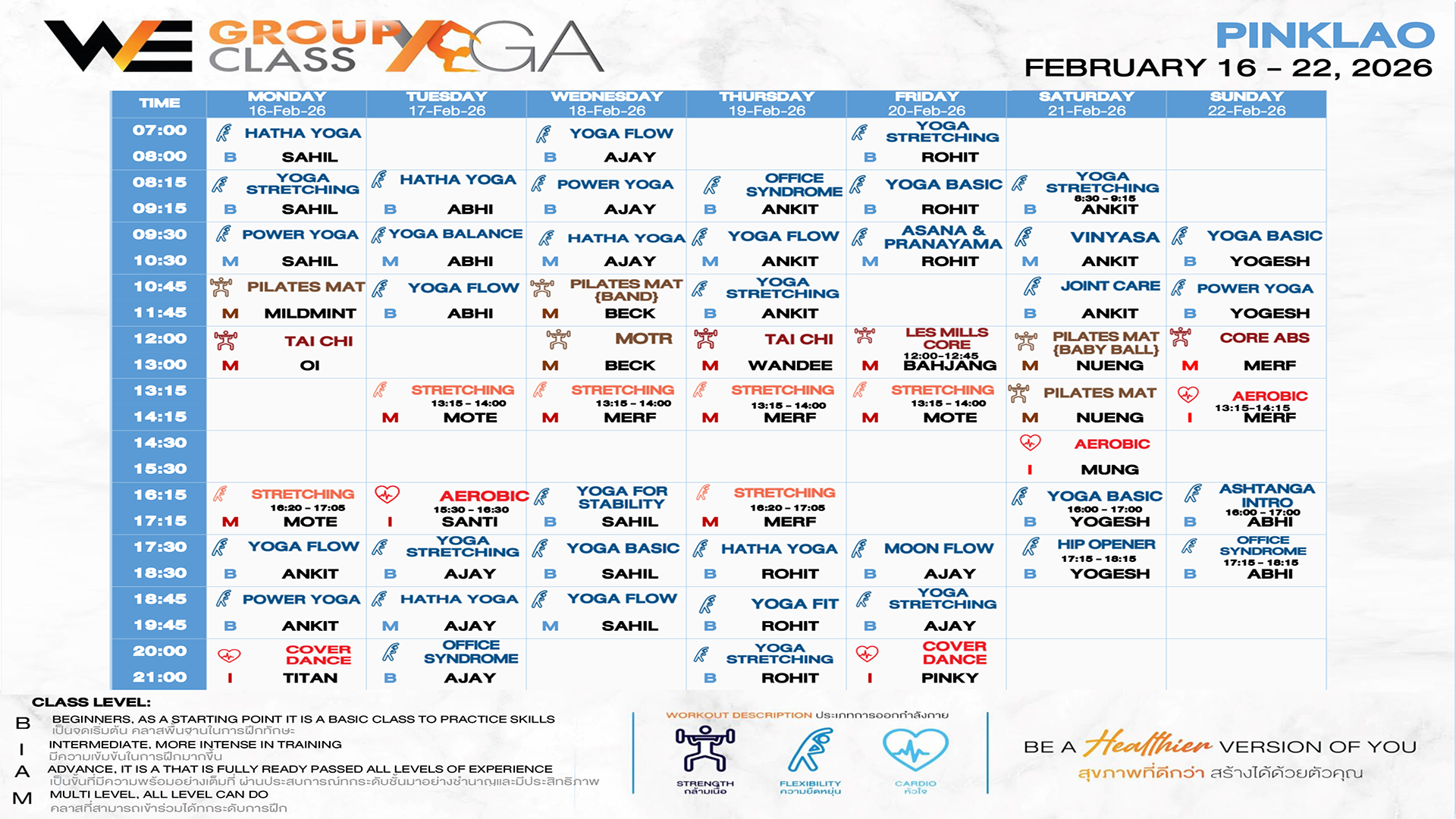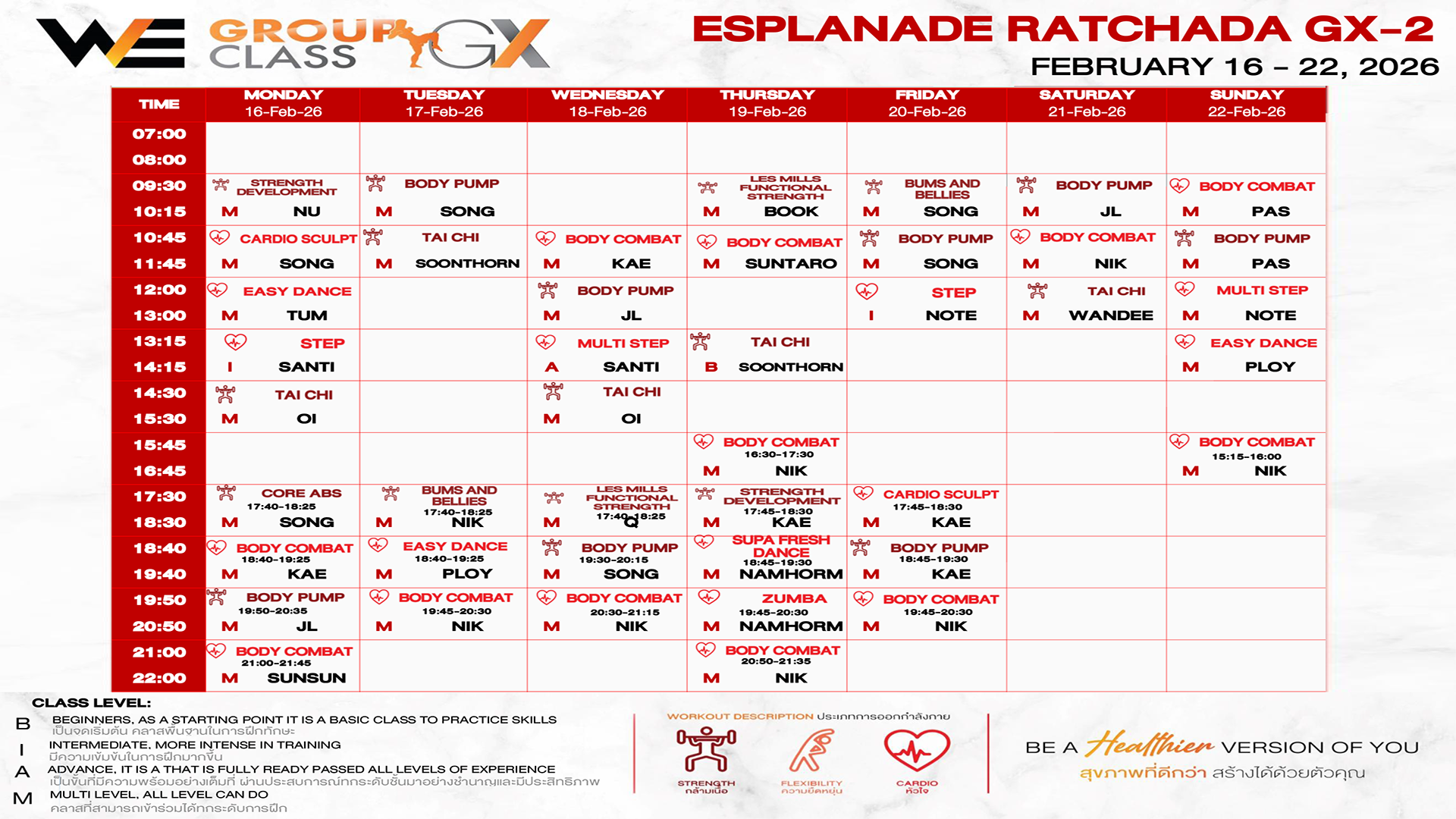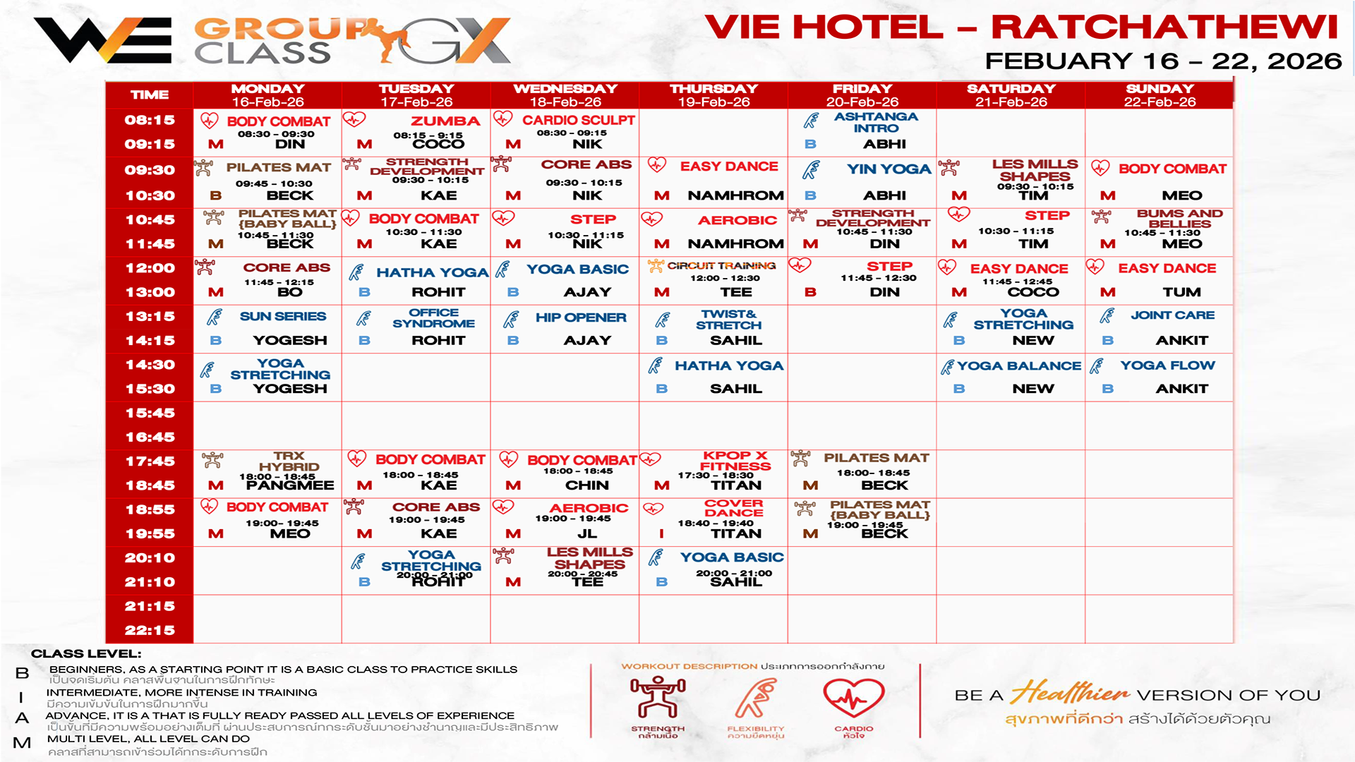 CLASS LINE UP 16-22 FEBRUARY 2026