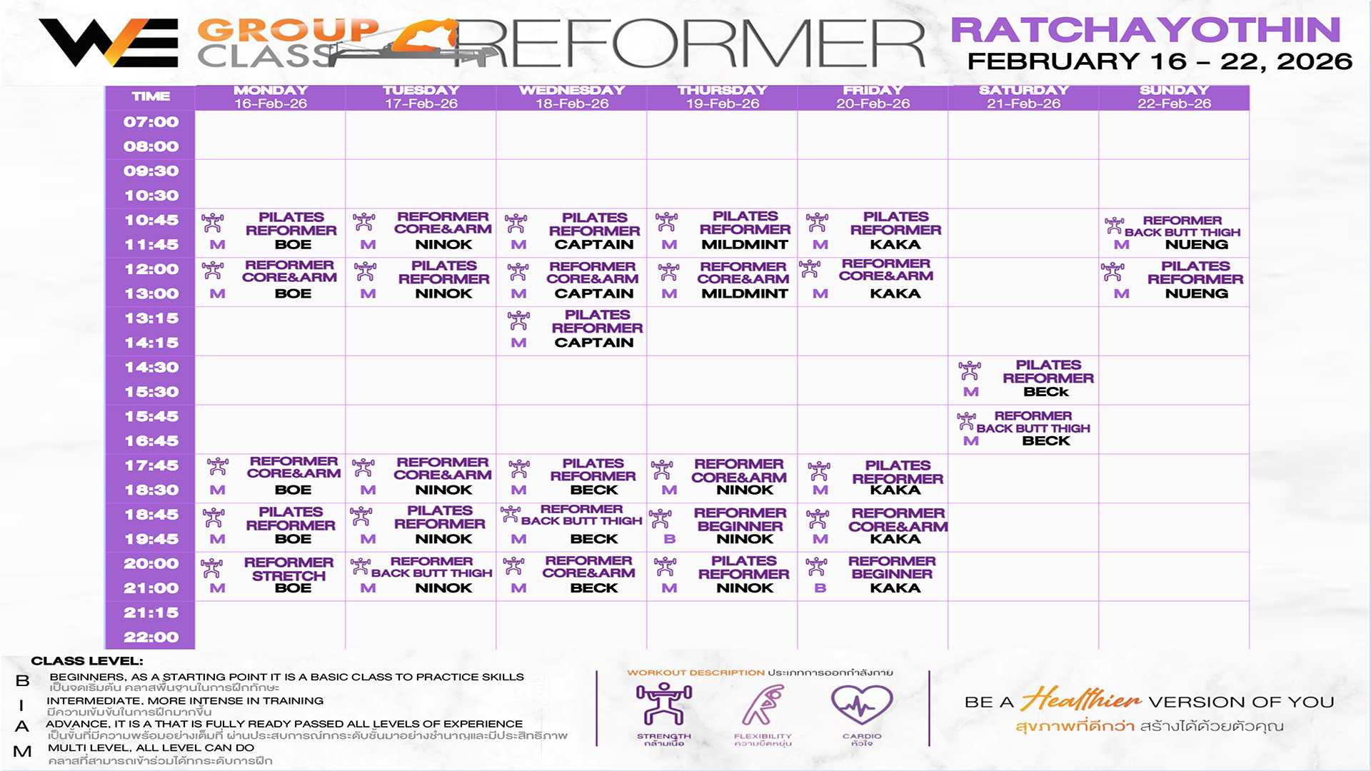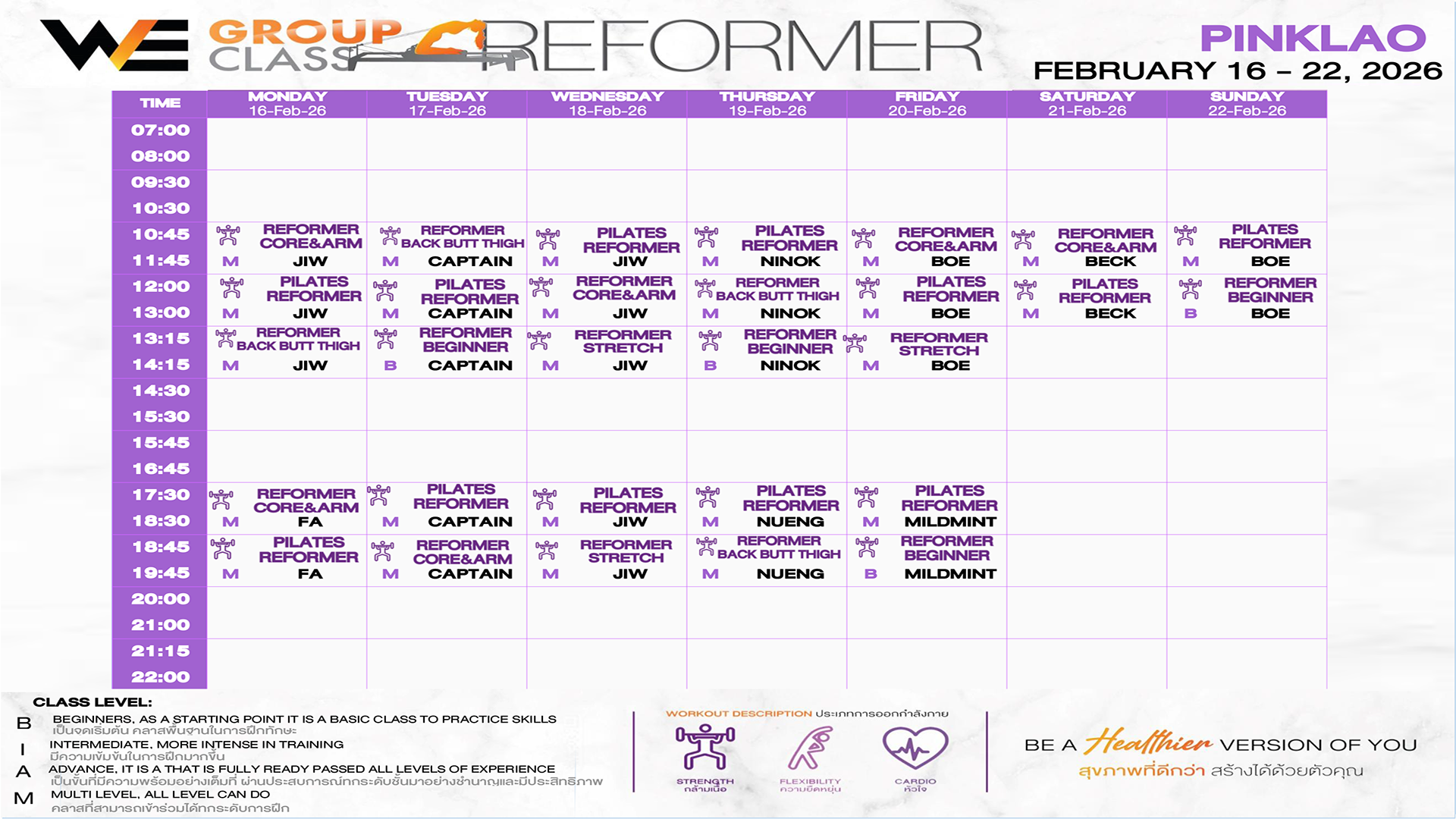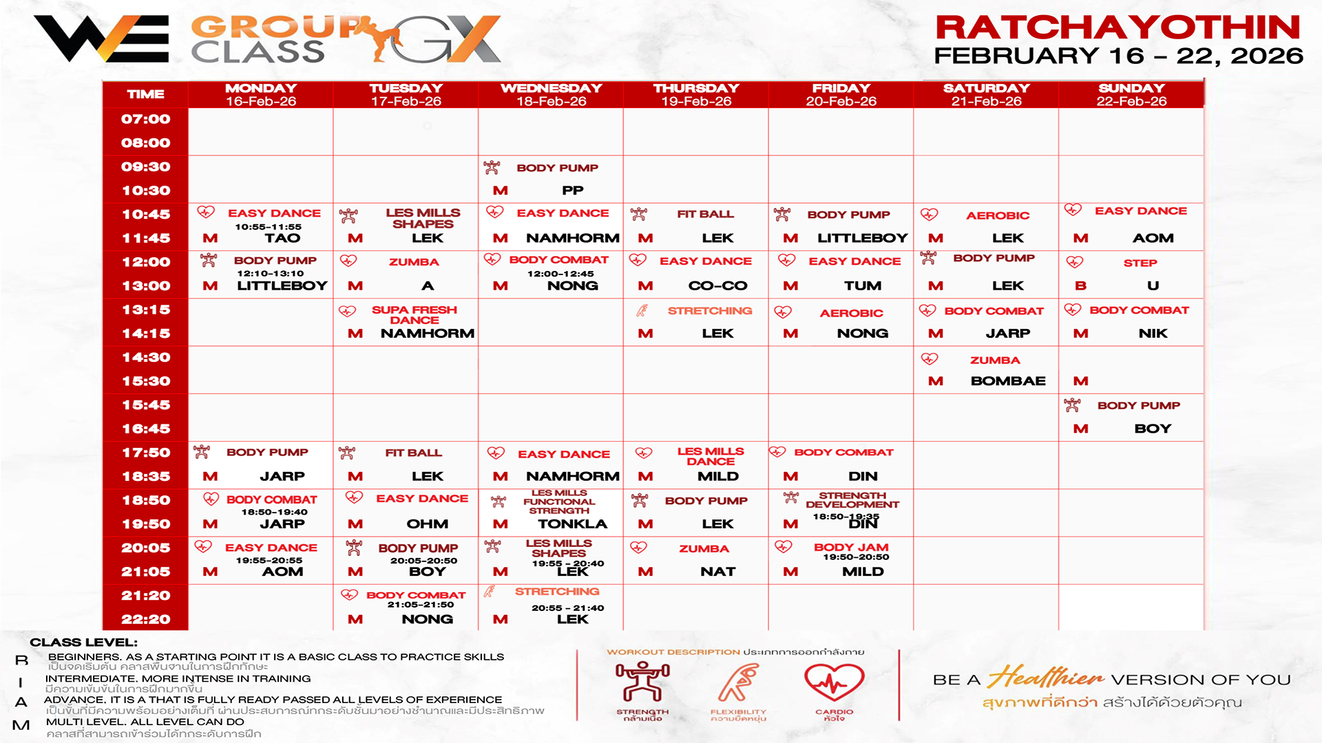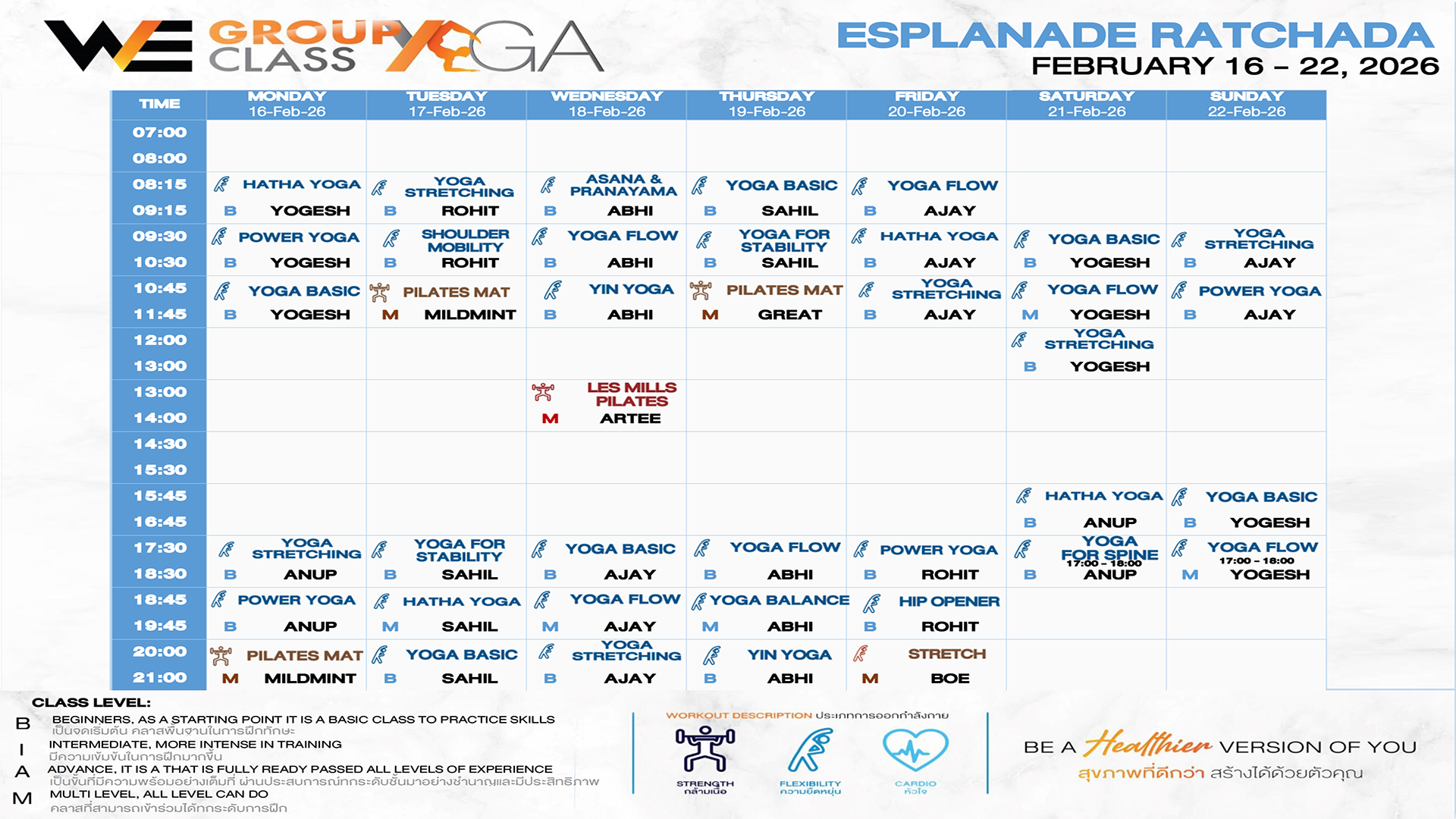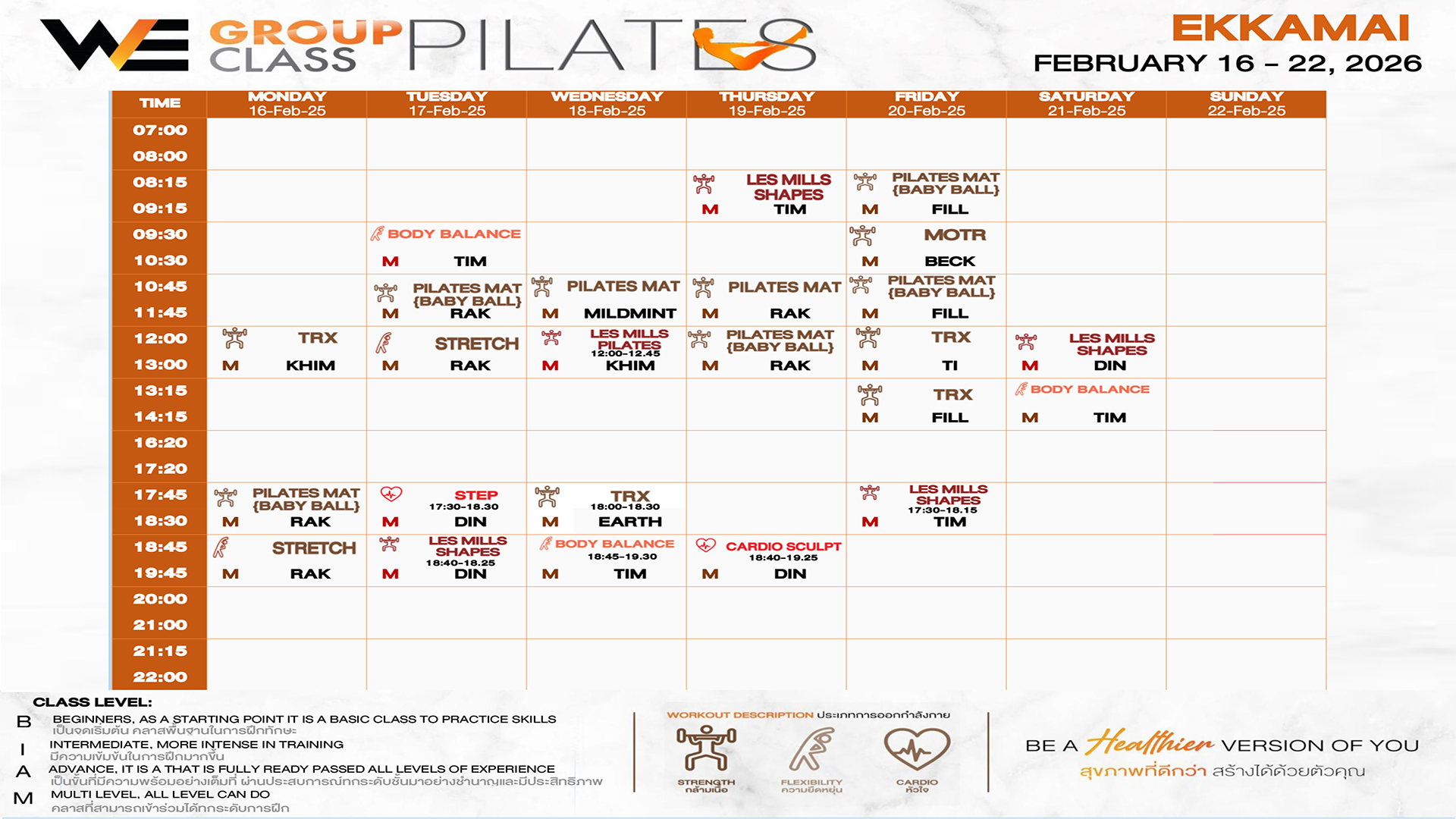 CLASS LINE UP 16-22 FEBRUARY 2026