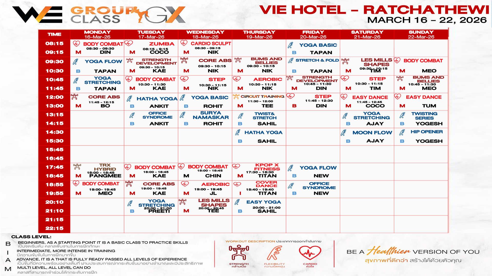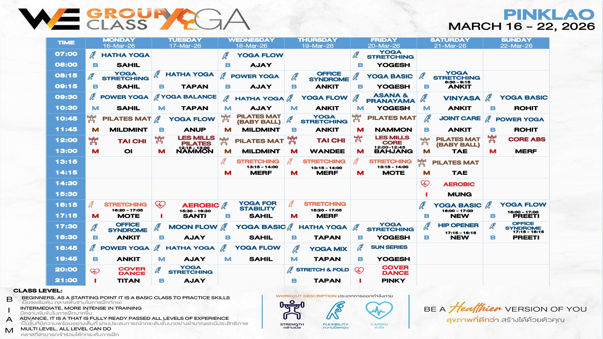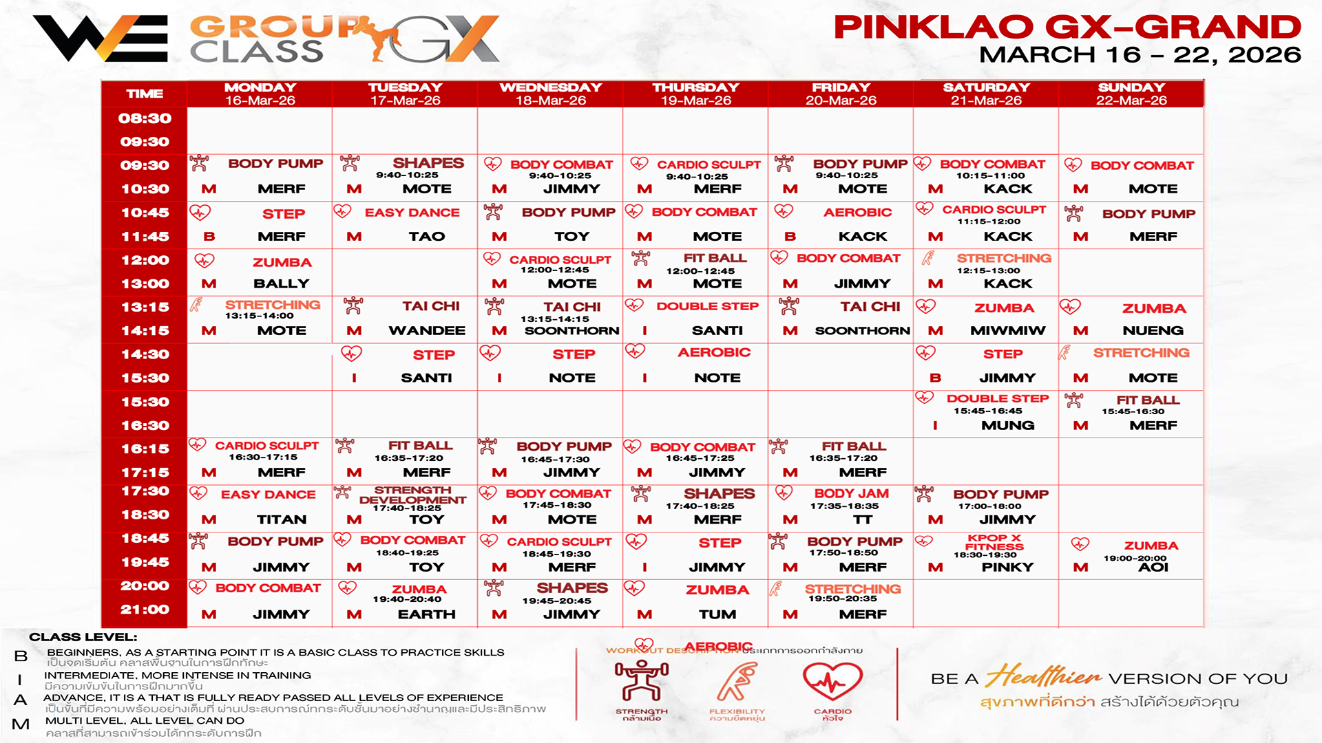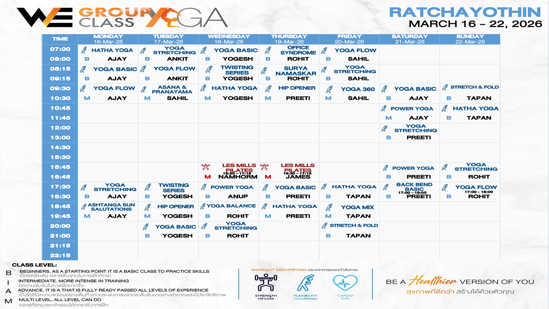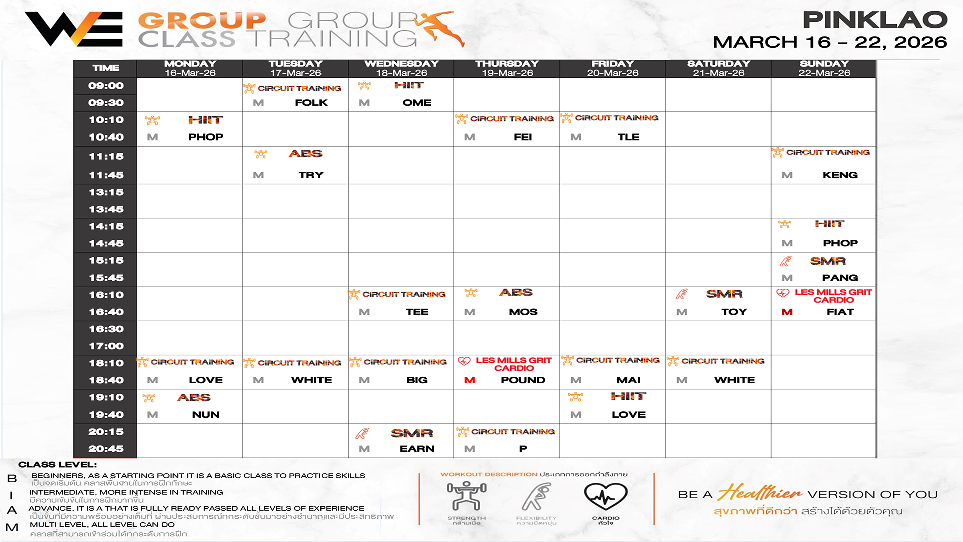 CLASS LINE UP 16 – 22 MARCH 2026