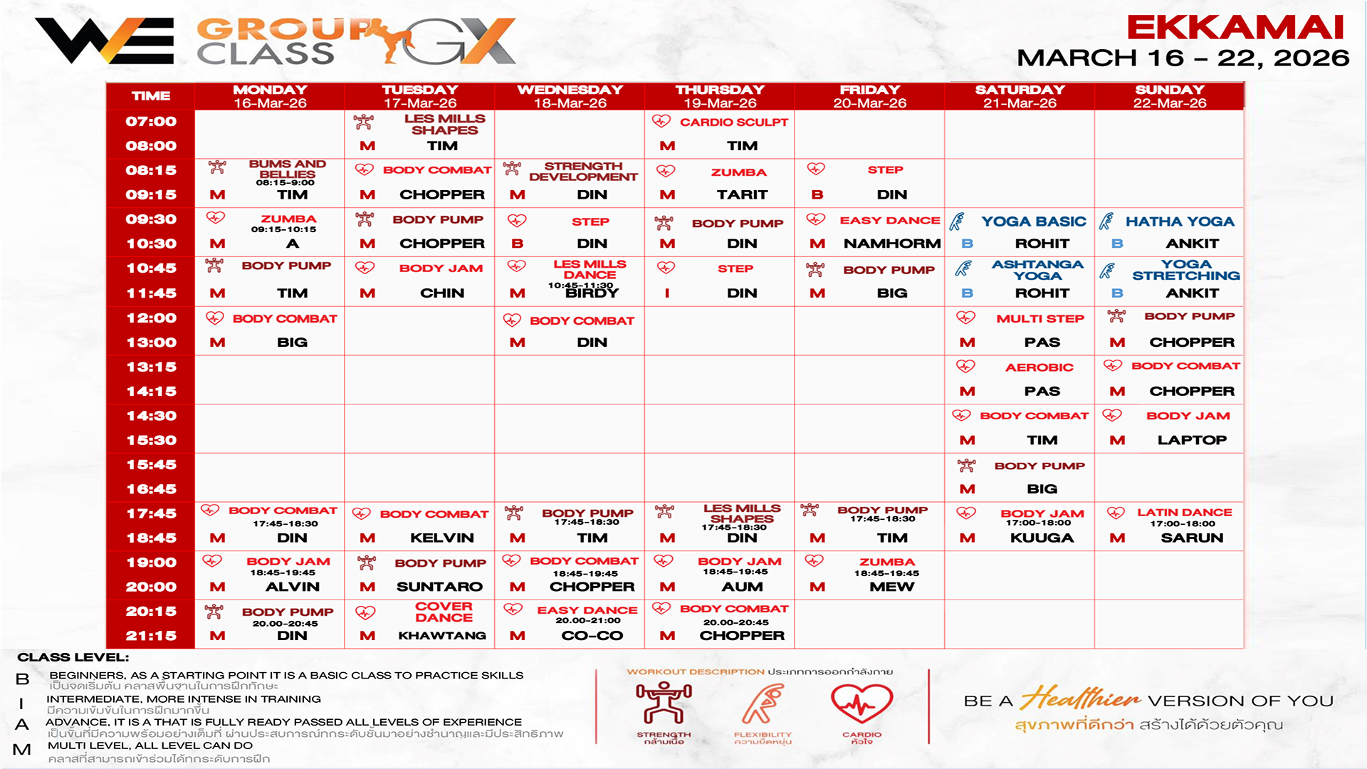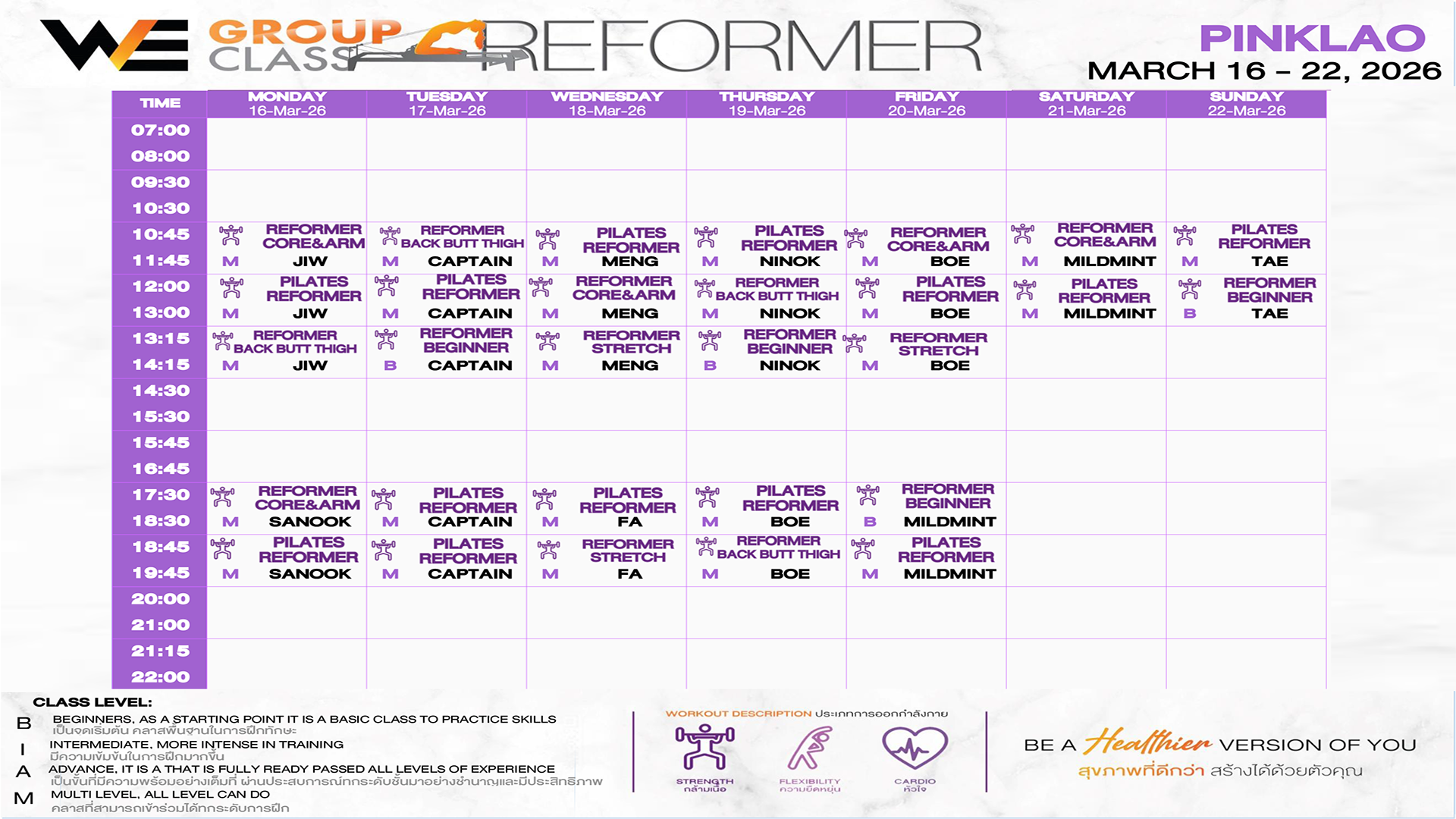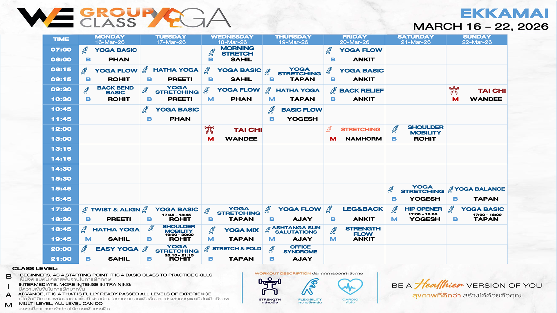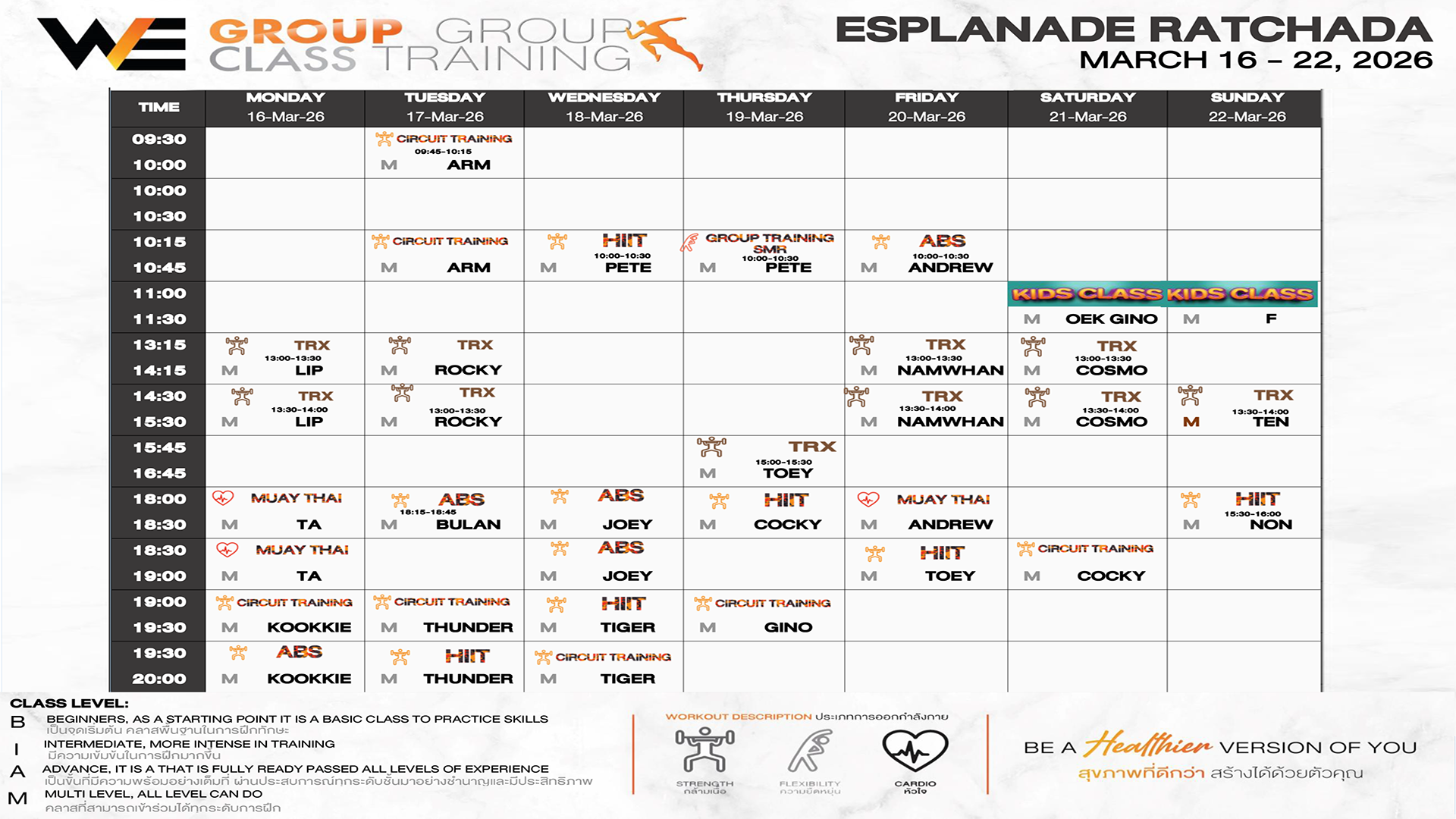 CLASS LINE UP 16 – 22 MARCH 2026