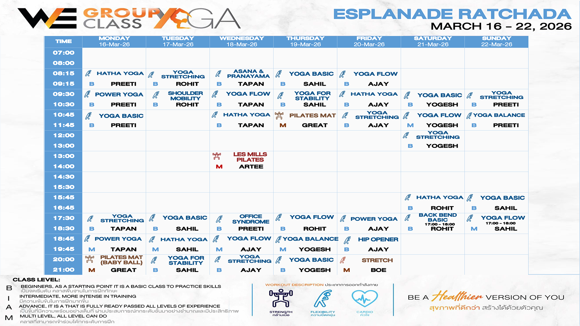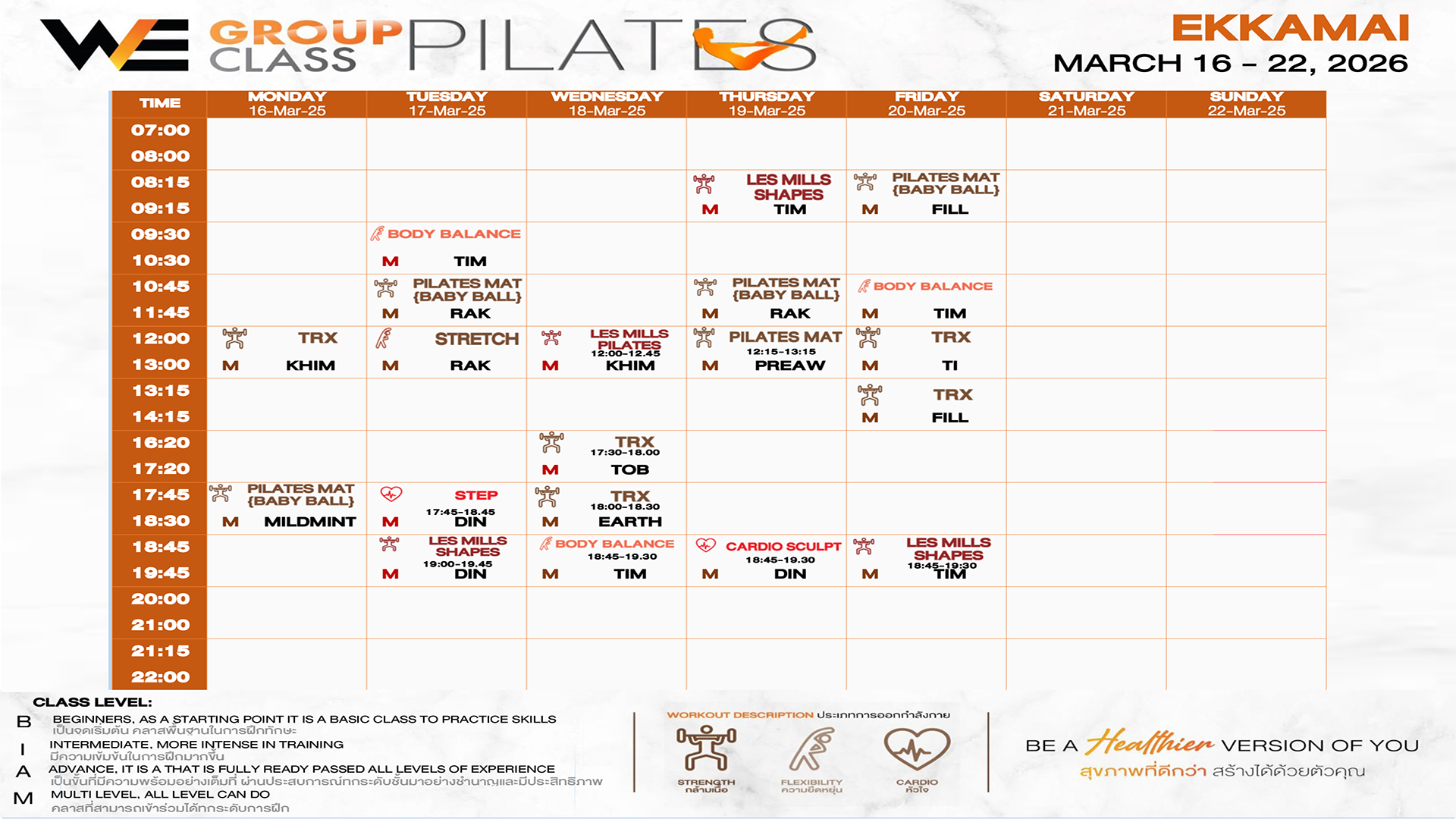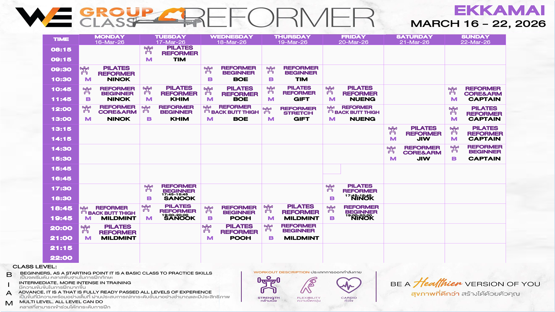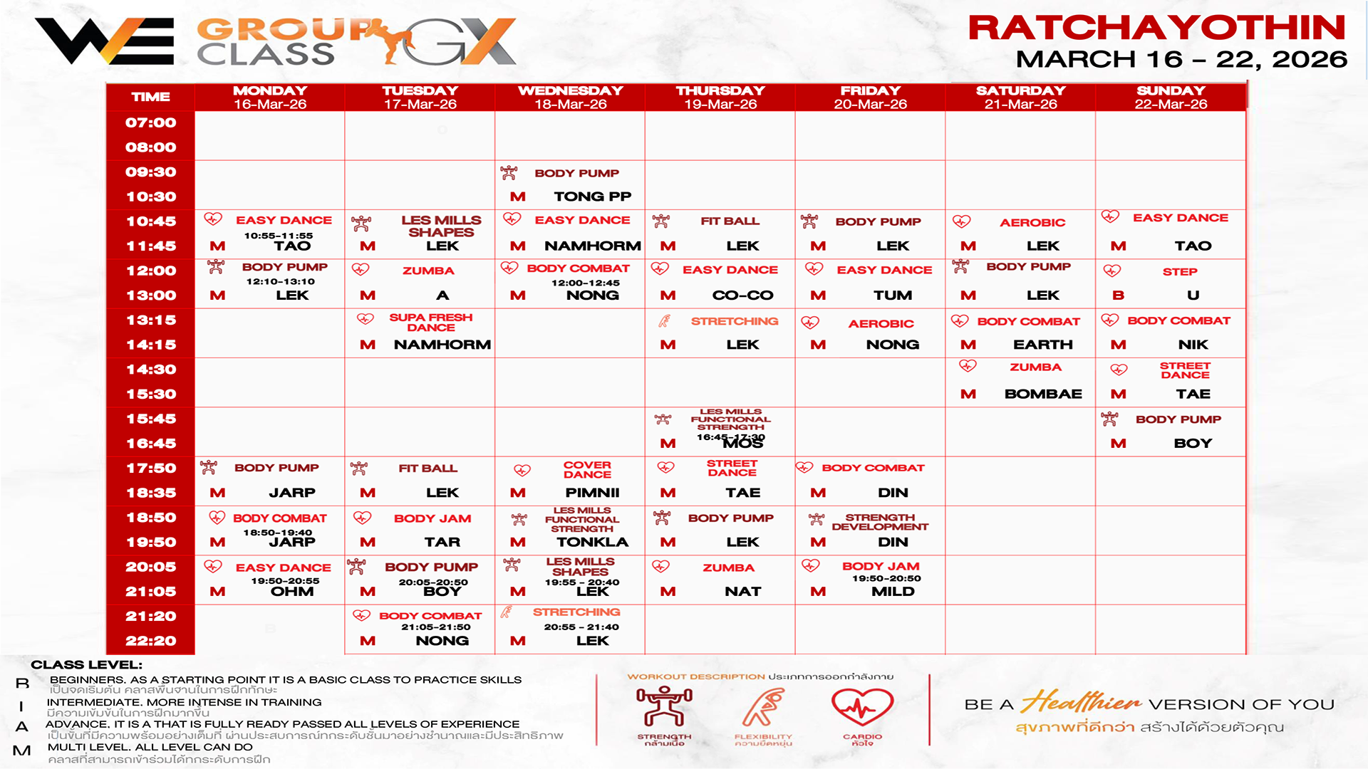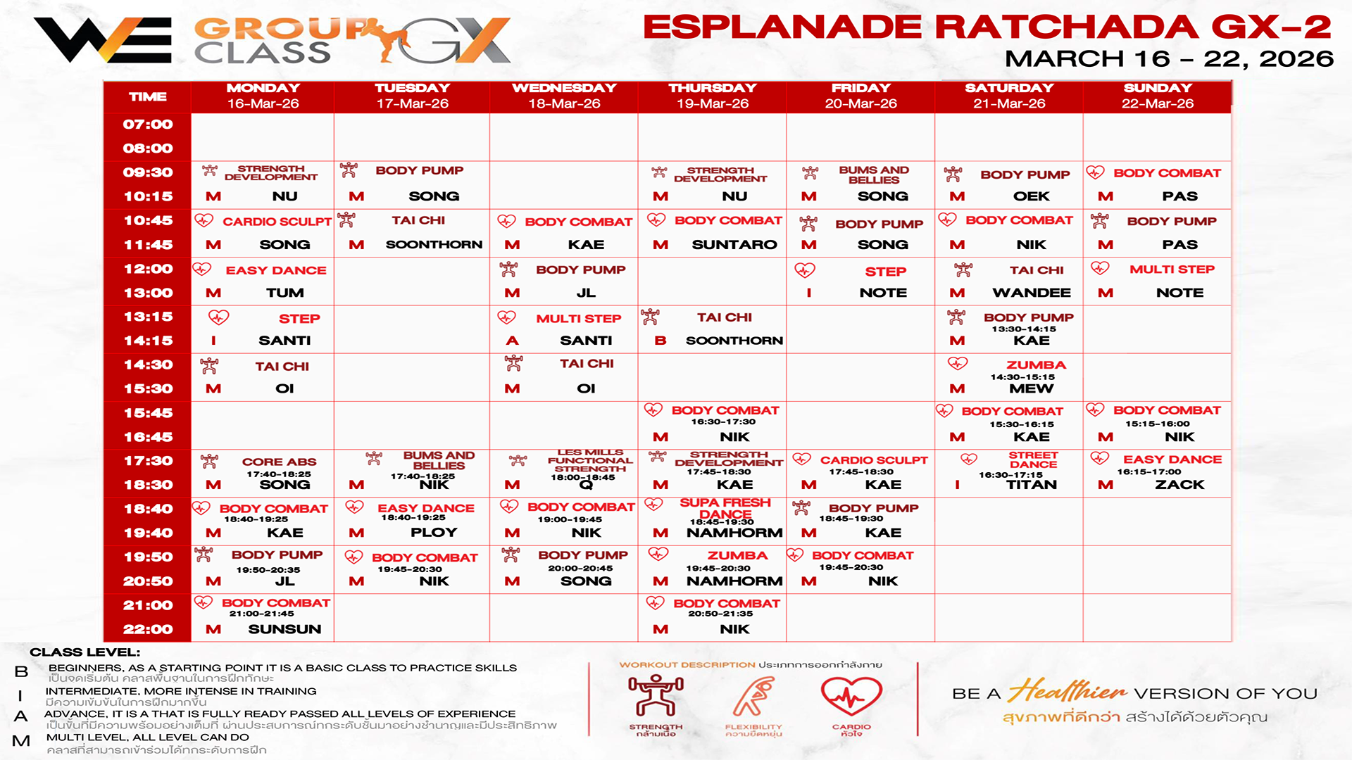 CLASS LINE UP 16 – 22 MARCH 2026