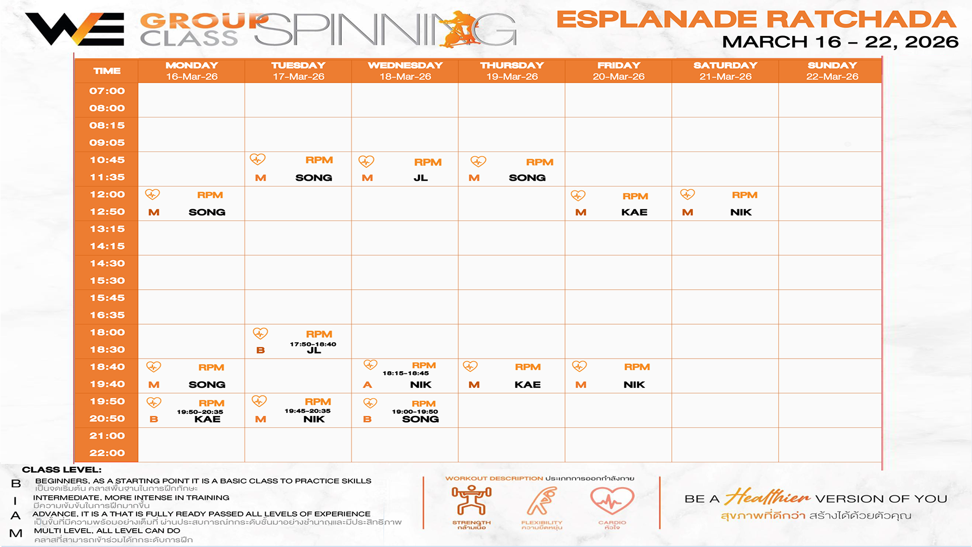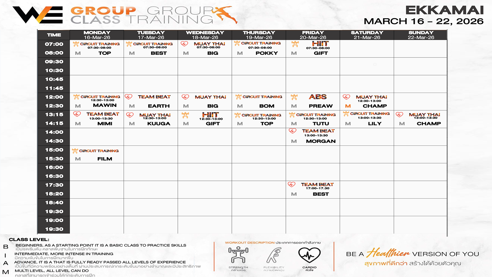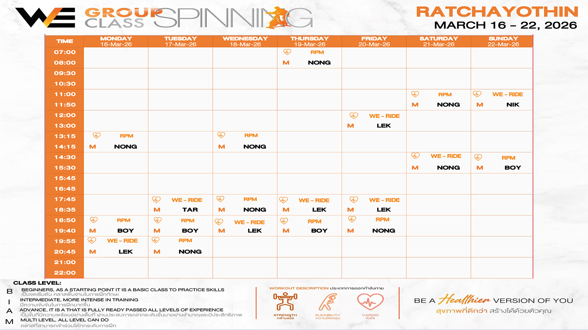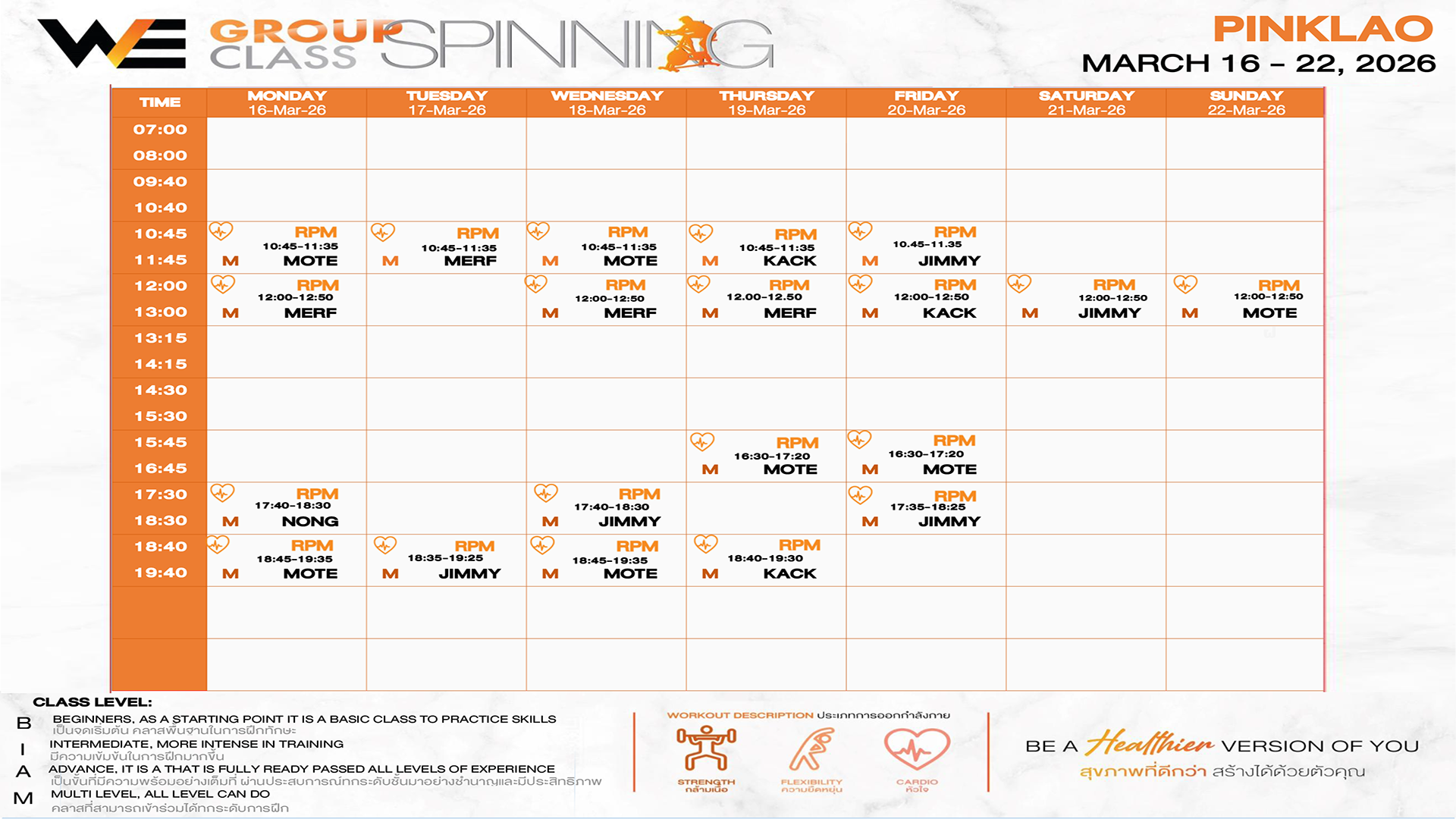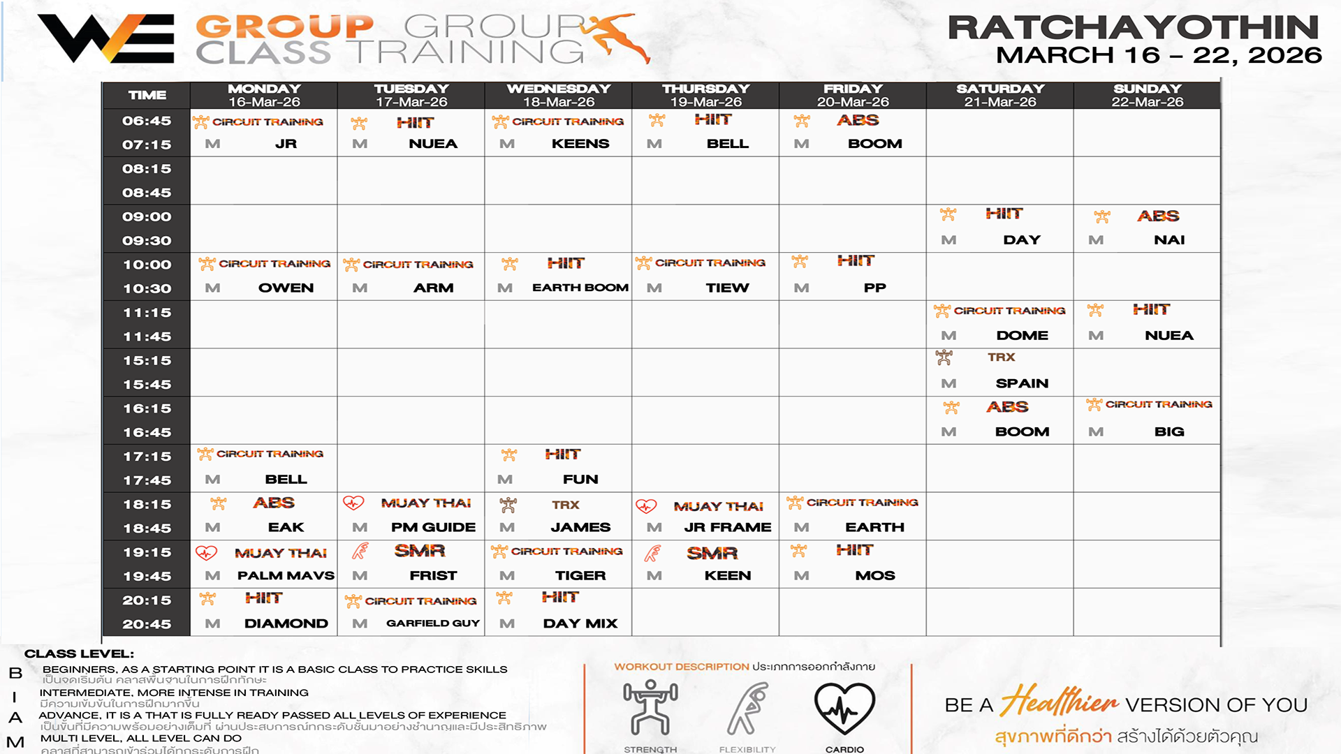 CLASS LINE UP 16 – 22 MARCH 2026
