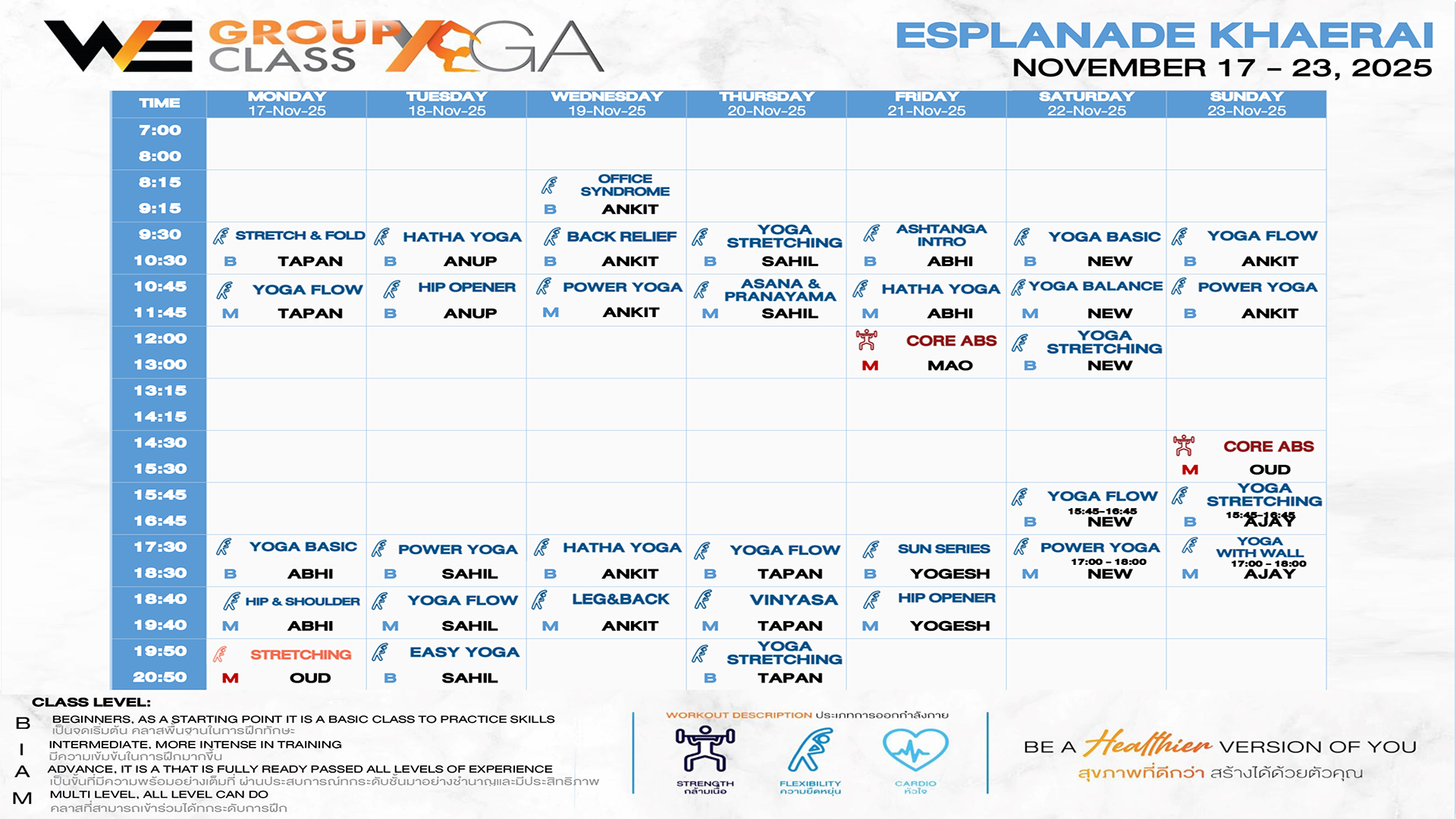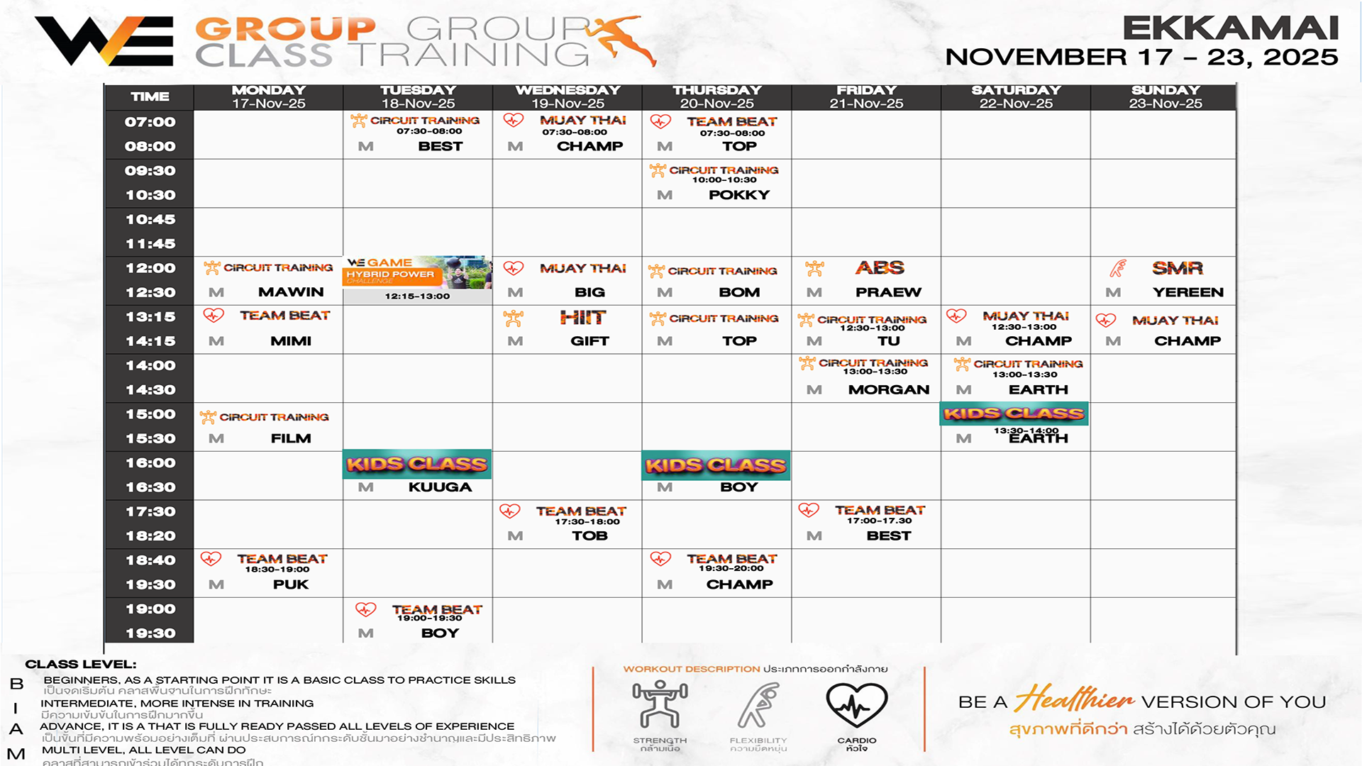 CLASS LINE UP 17 – 23 NOVEMBER 2025