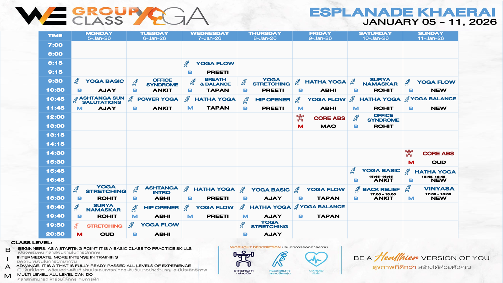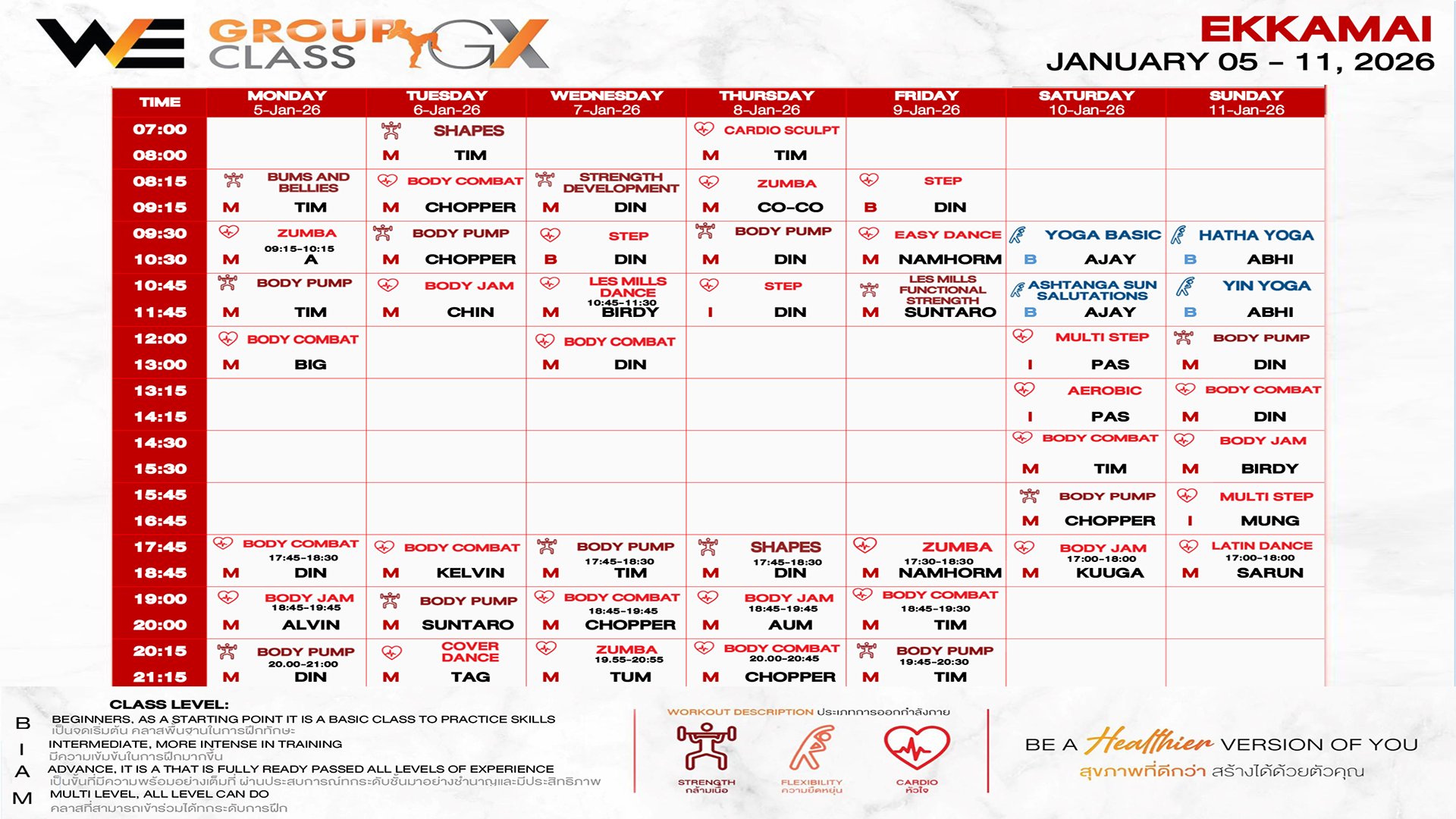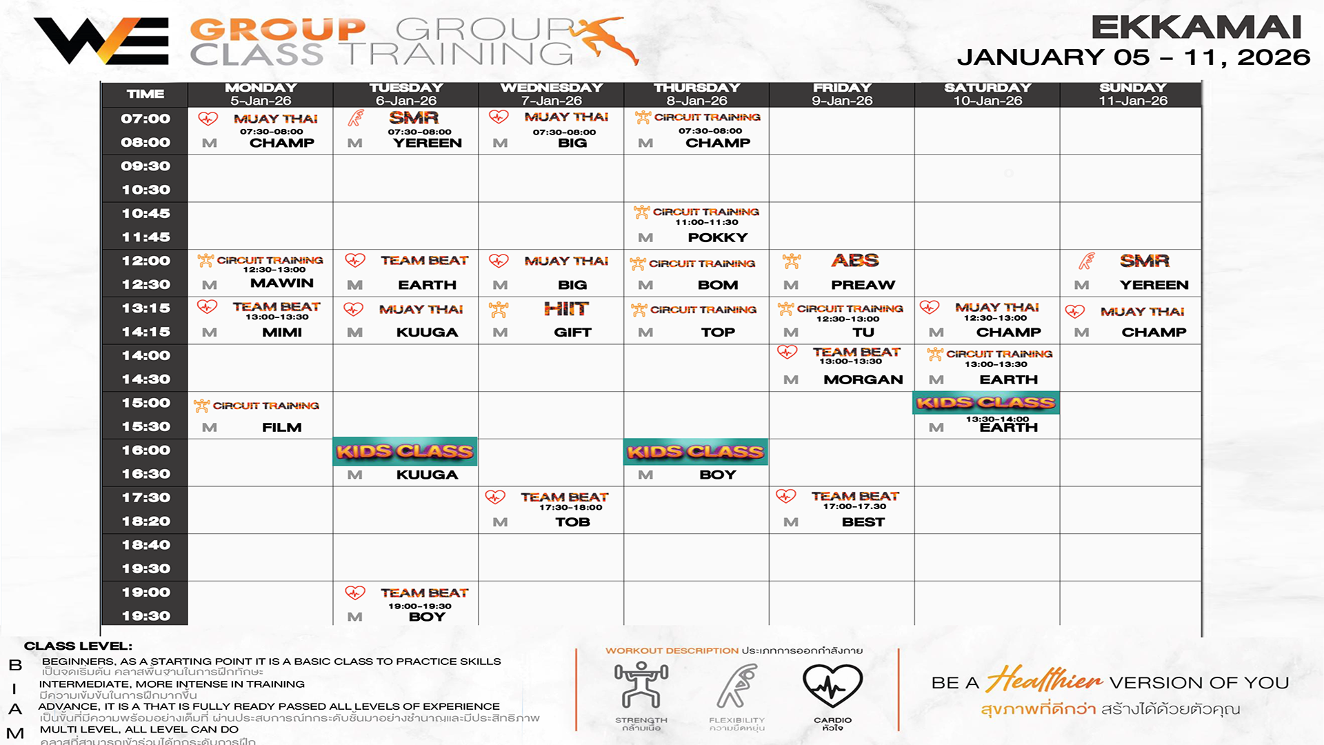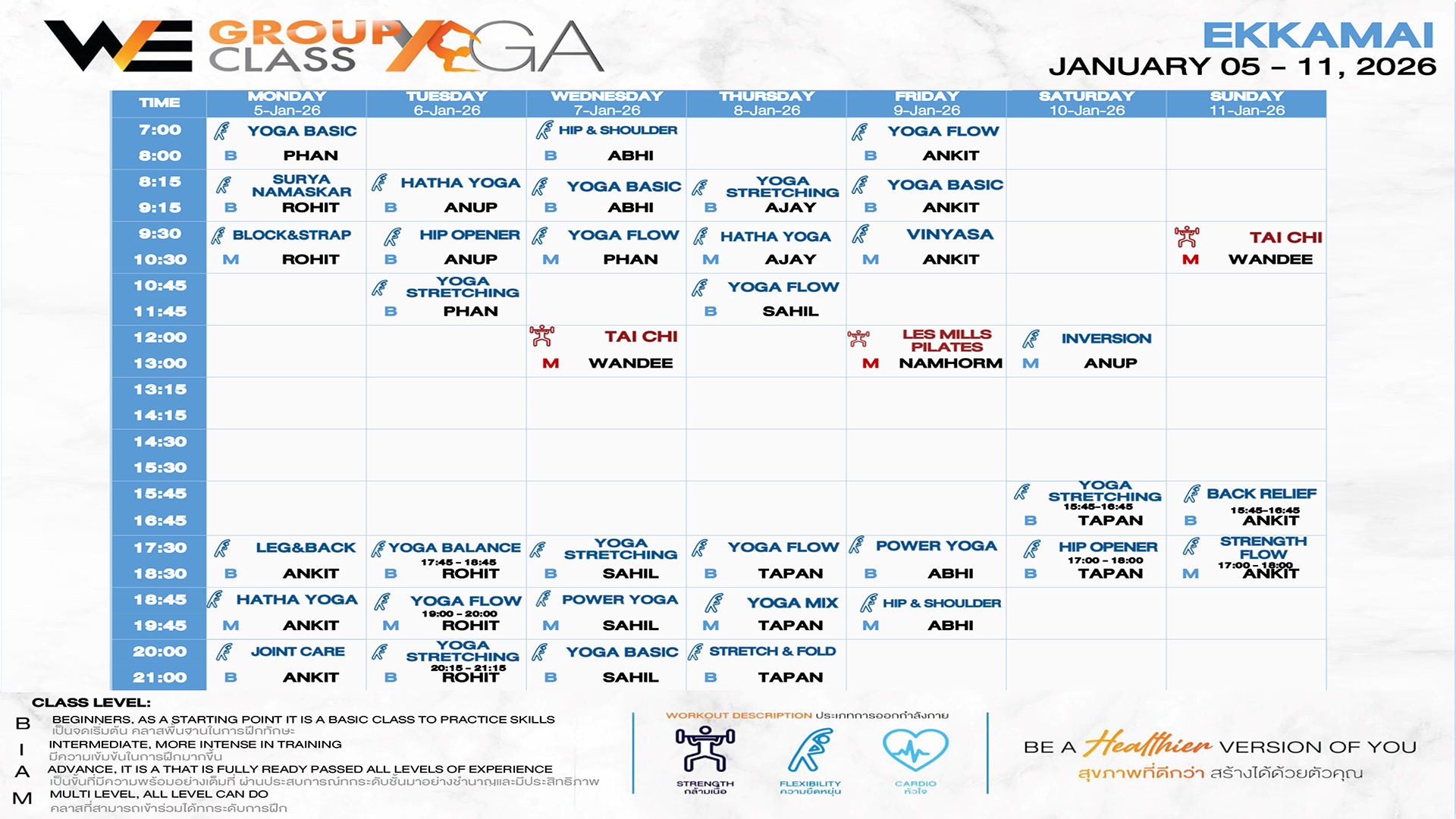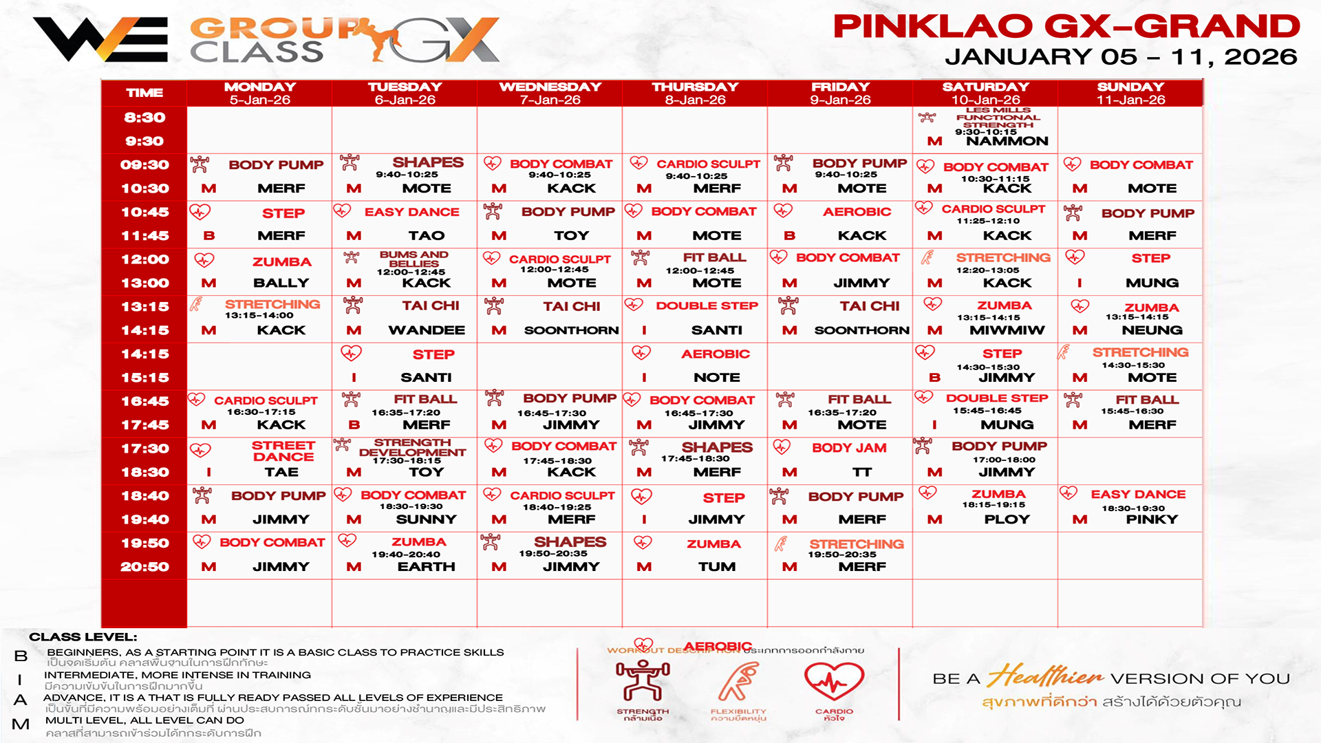 CLASS LINE UP 5 – 11 JANUARY 2026