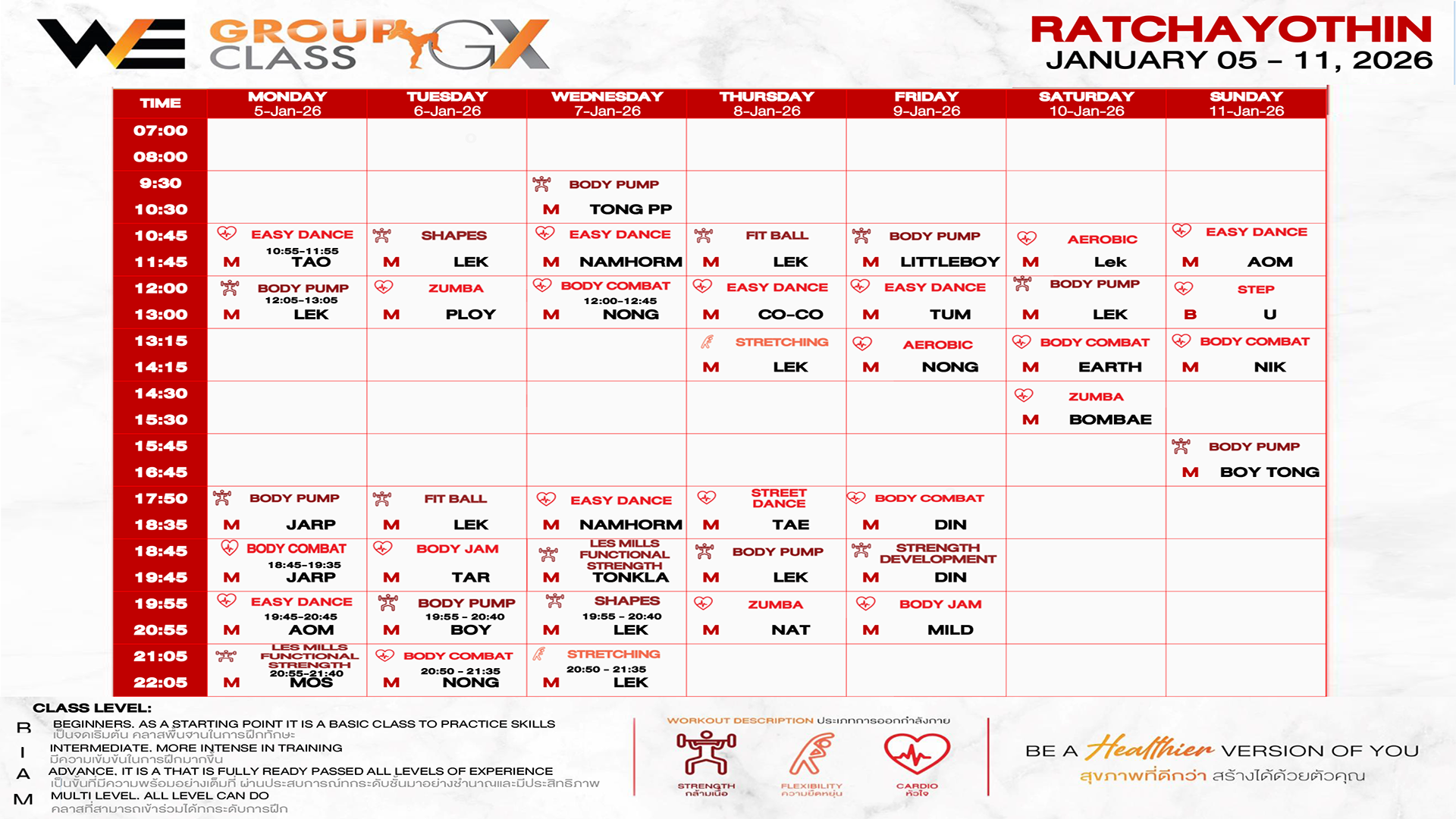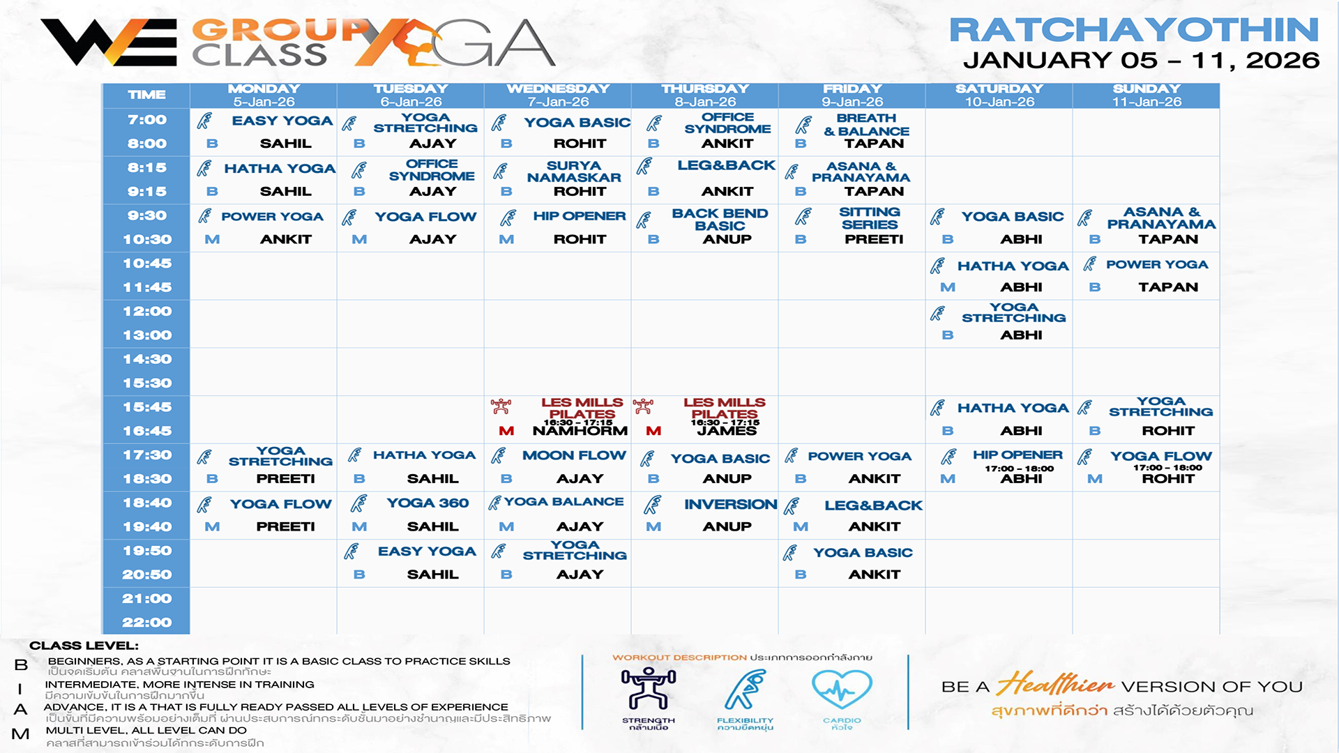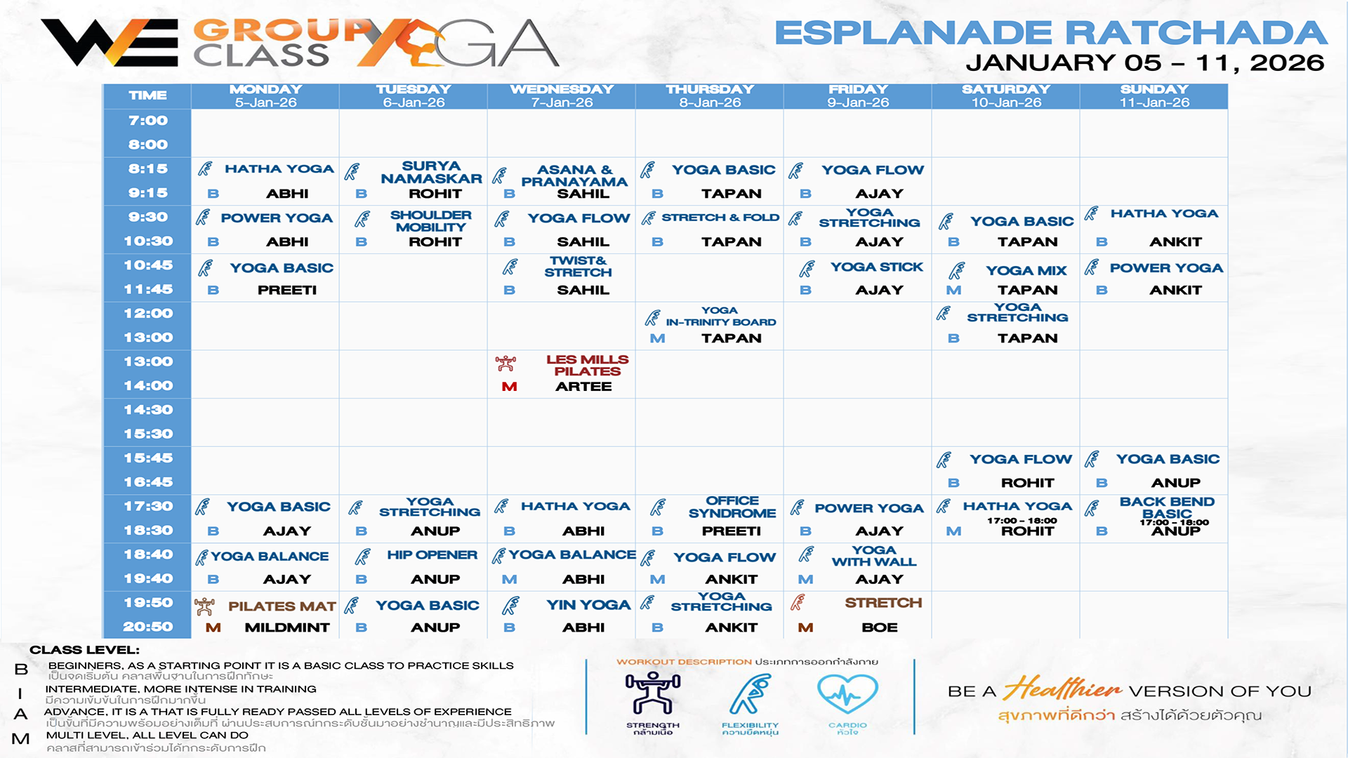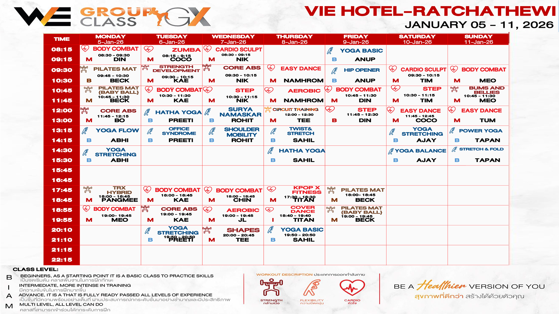 CLASS LINE UP 5 – 11 JANUARY 2026