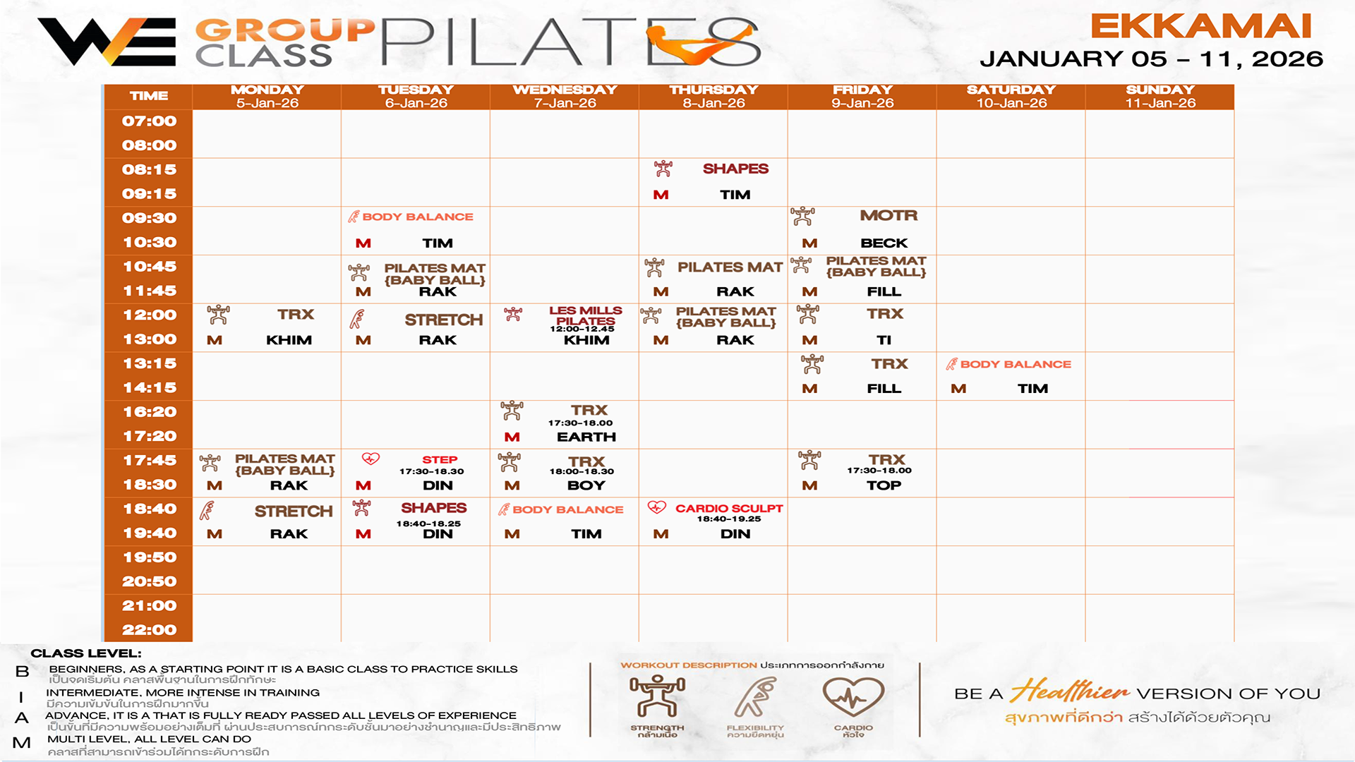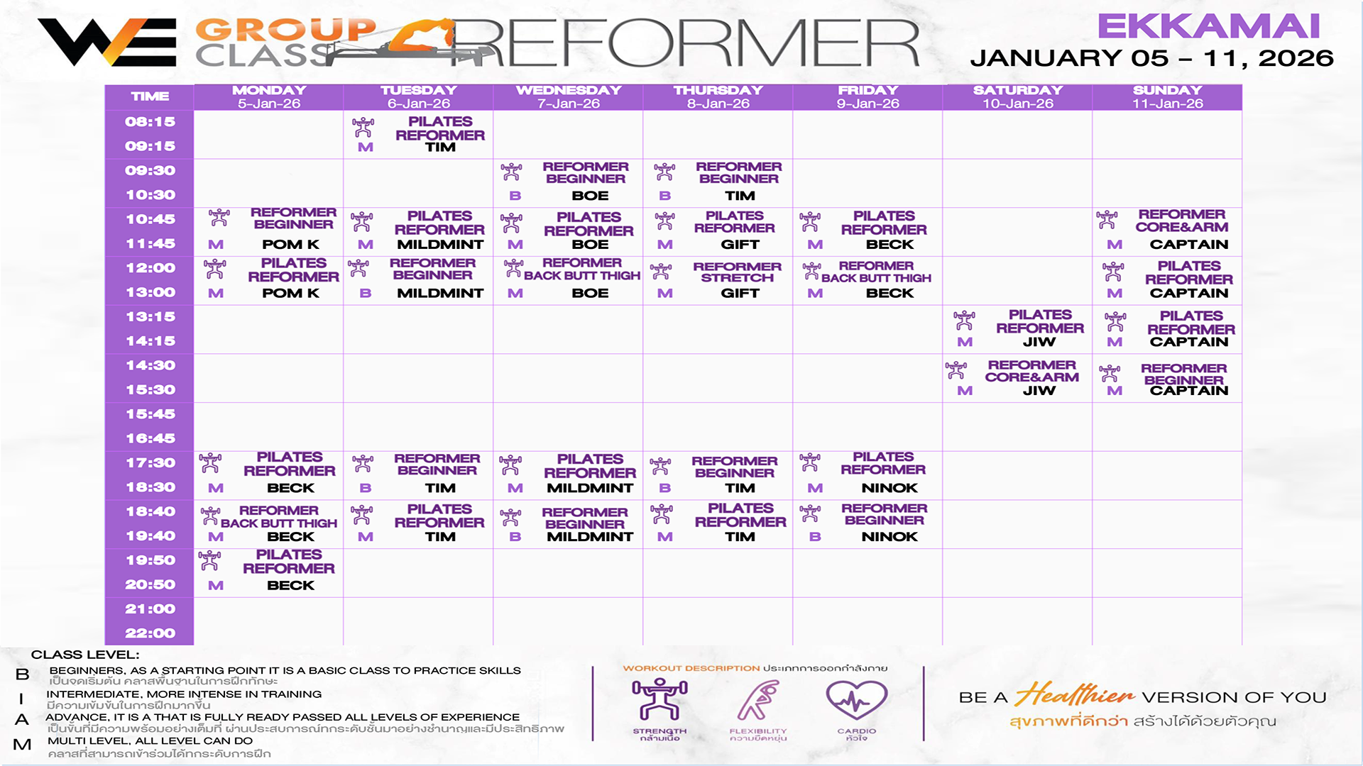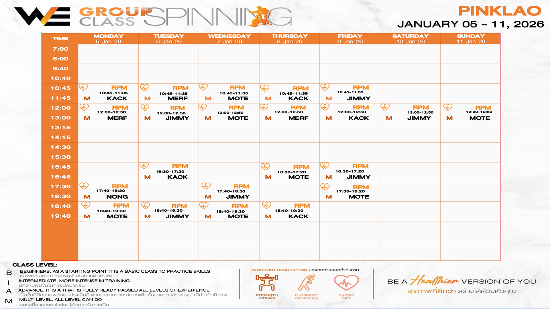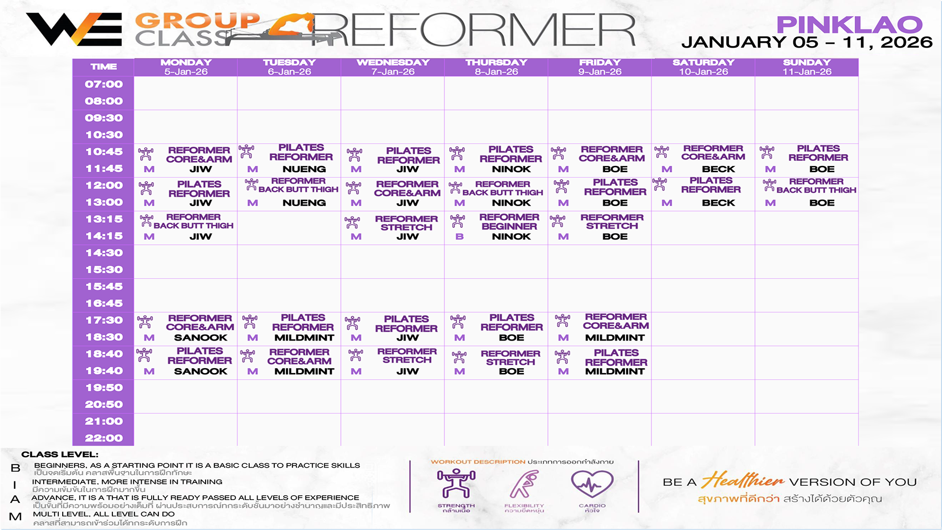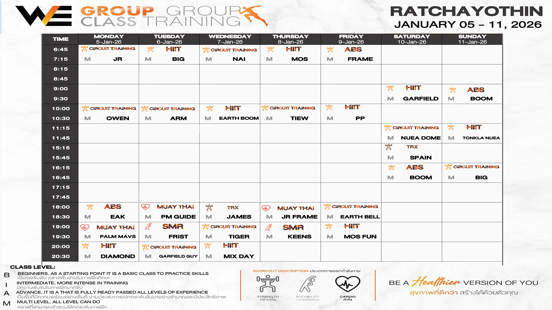 CLASS LINE UP 5 – 11 JANUARY 2026